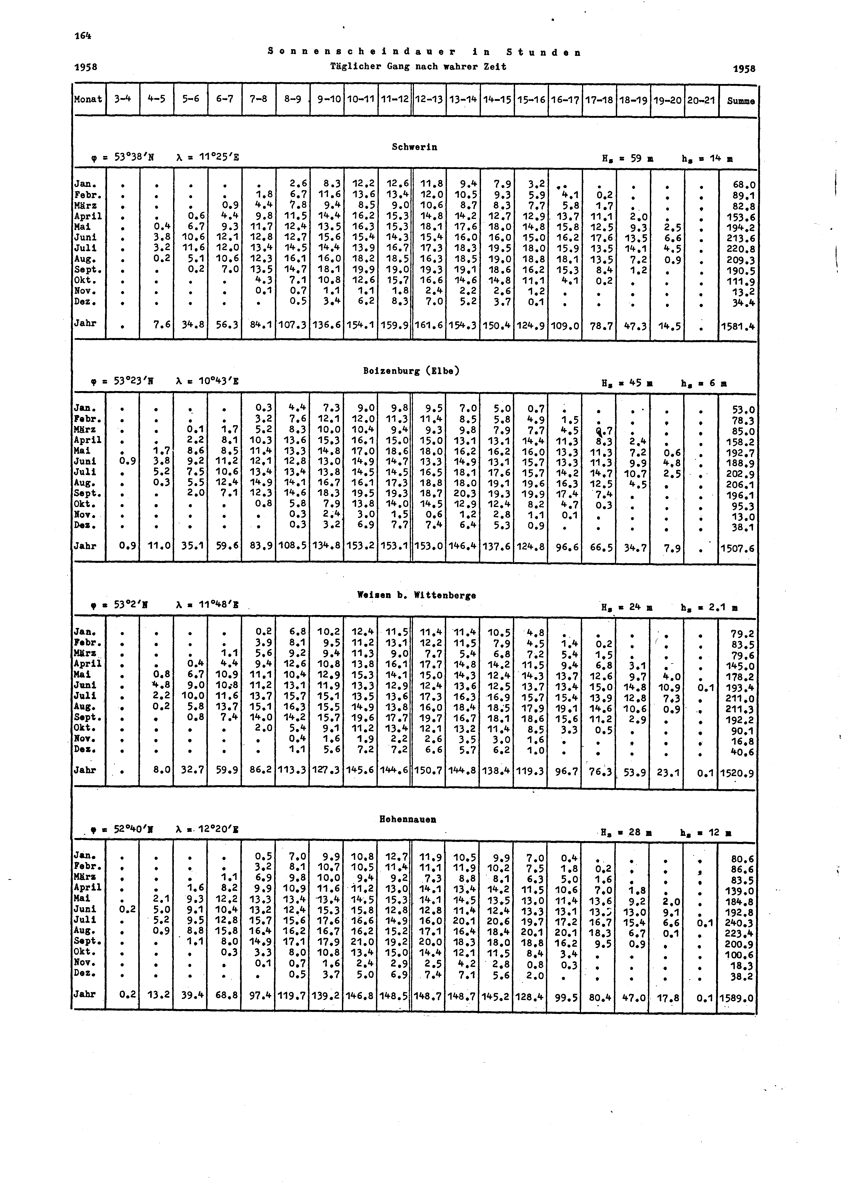 Sonnenscheinbeobachtungen