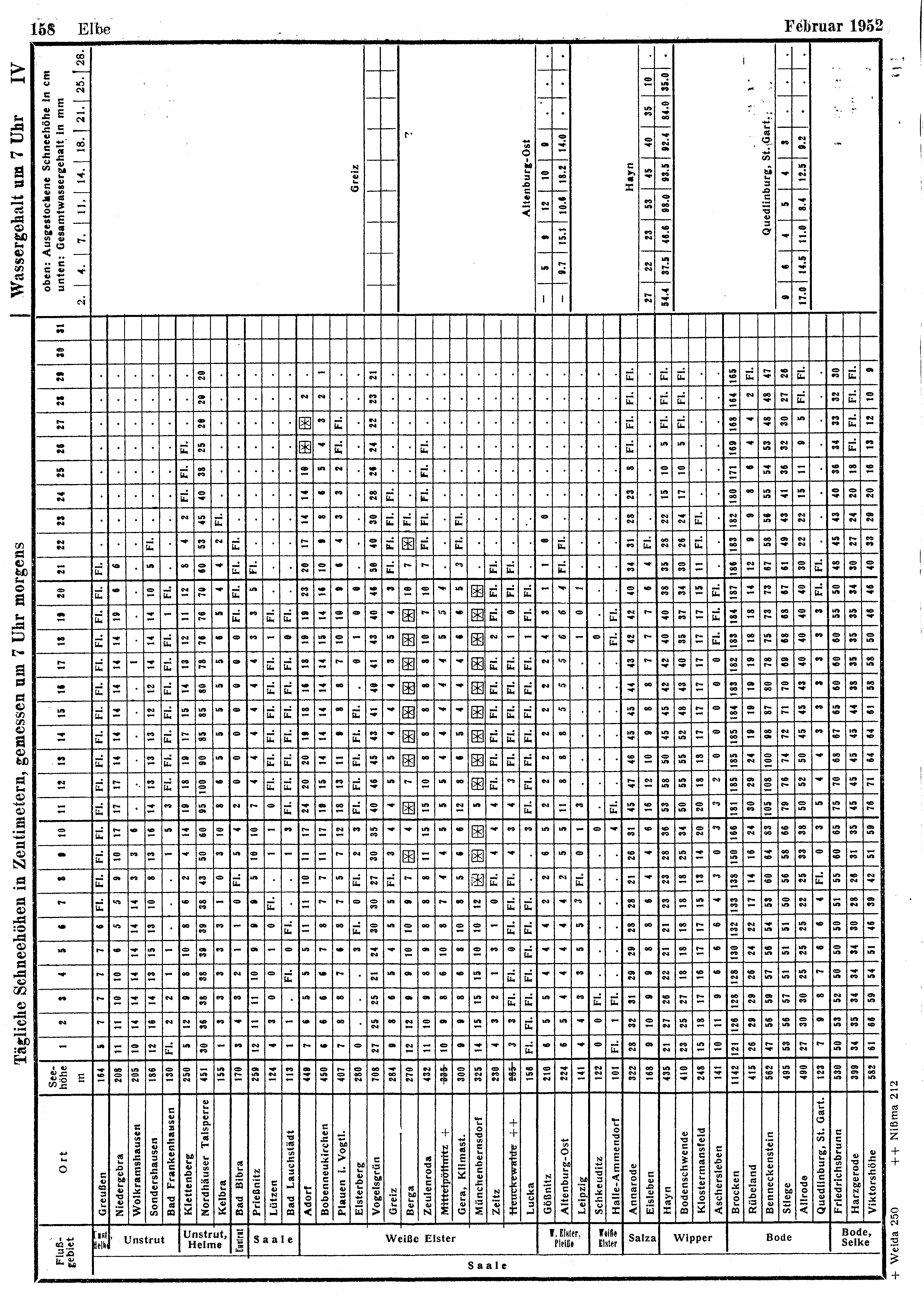 Tägliche Schneehöhen, Wassergehalt der Schneedecke