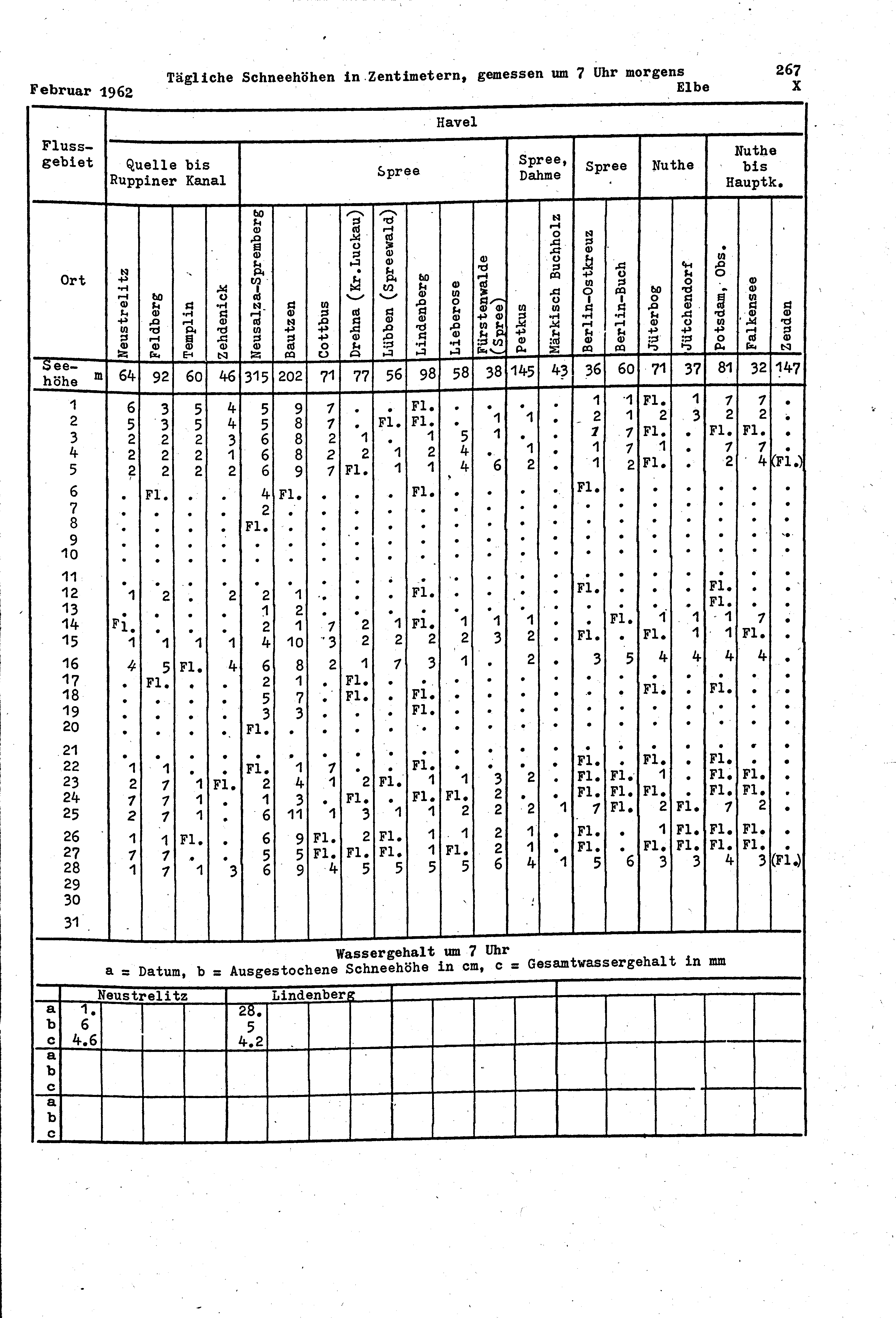 Tägliche Schneehöhen, Wassergehalt der Schneedecke