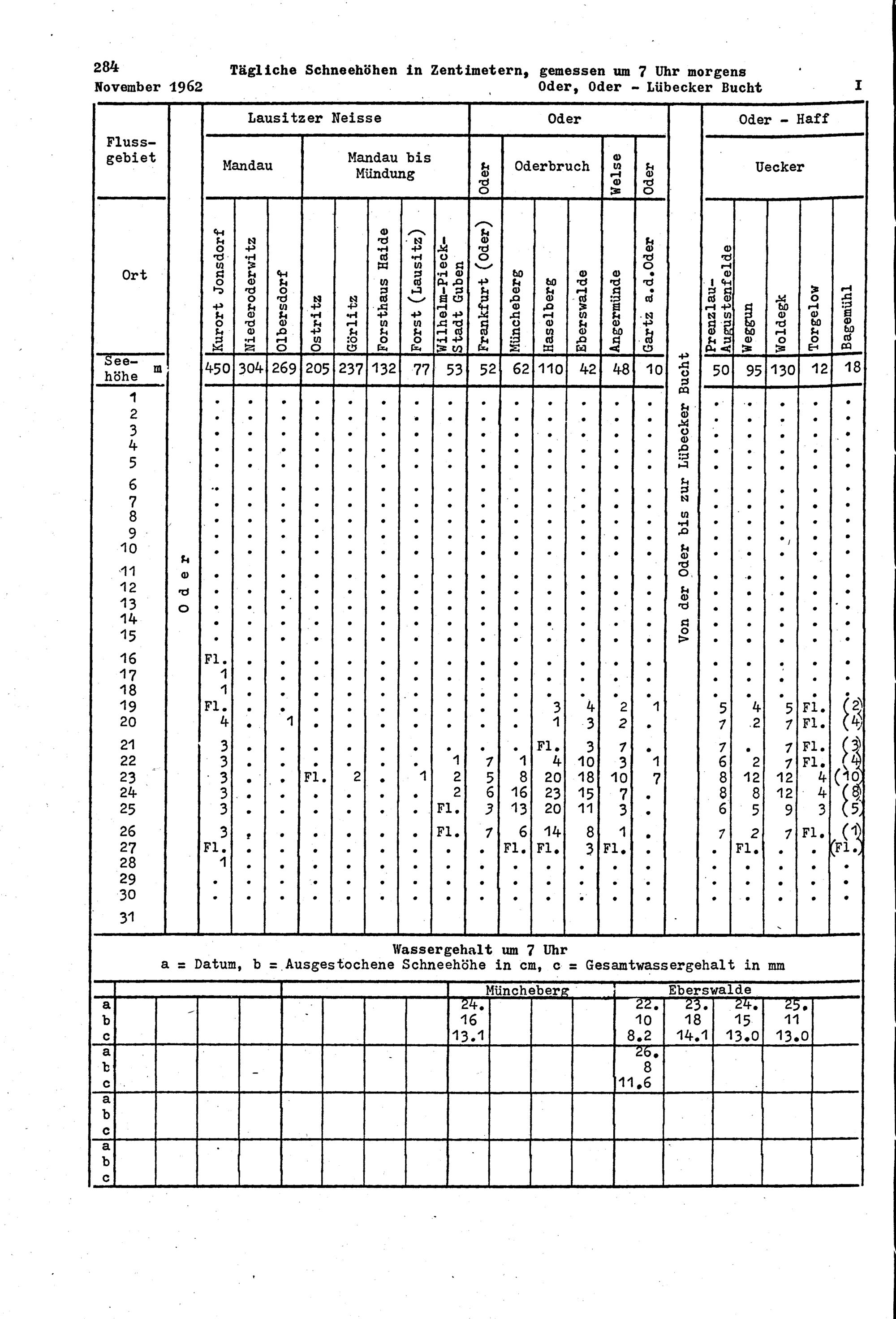 Tägliche Schneehöhen, Wassergehalt der Schneedecke