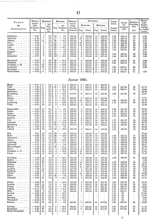 Monatliche Mittel des Jahrganges ... für Druck, Temperatur, Feuchtigkeit und Niederschläge...