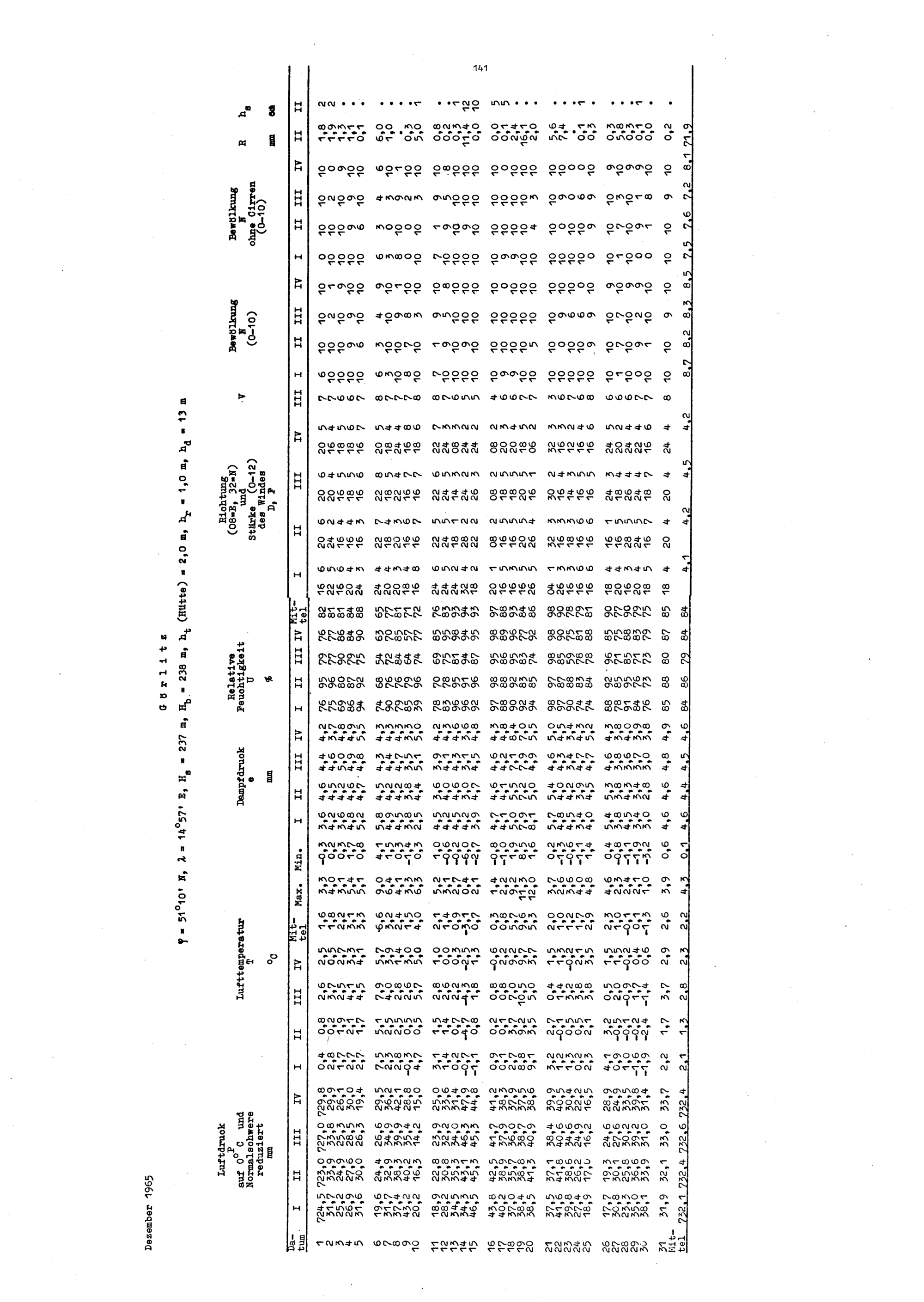 Tägliche Beobachtungen von 12 Stationen