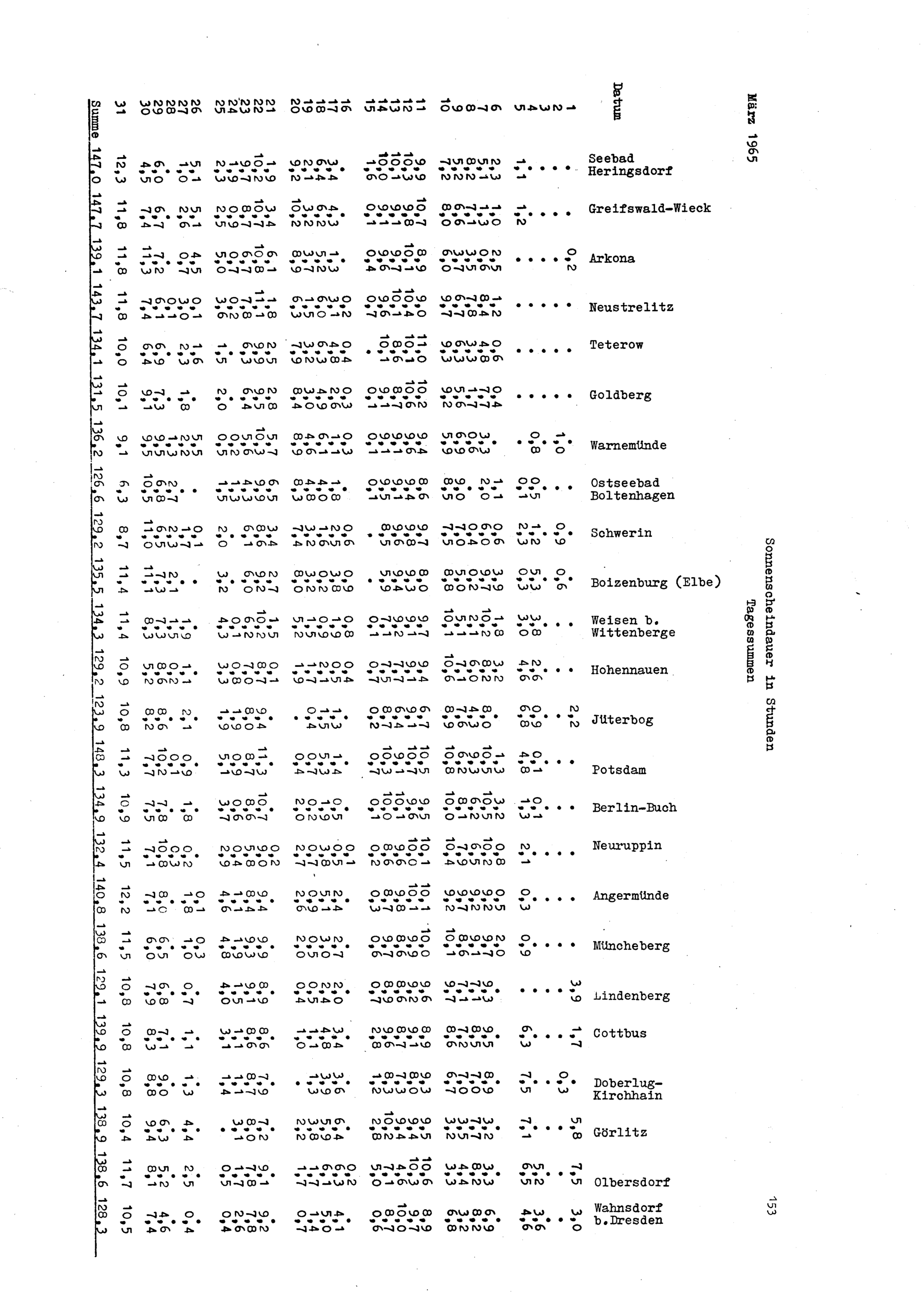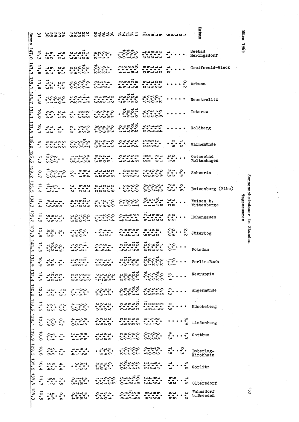 Sonnenscheindauer, Tagessummen von 48 Stationen