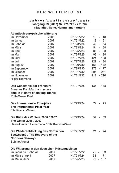 Jahresinhaltsverzeichnis Jahrgang 59 (2007) Nr. 721/722-731/732
