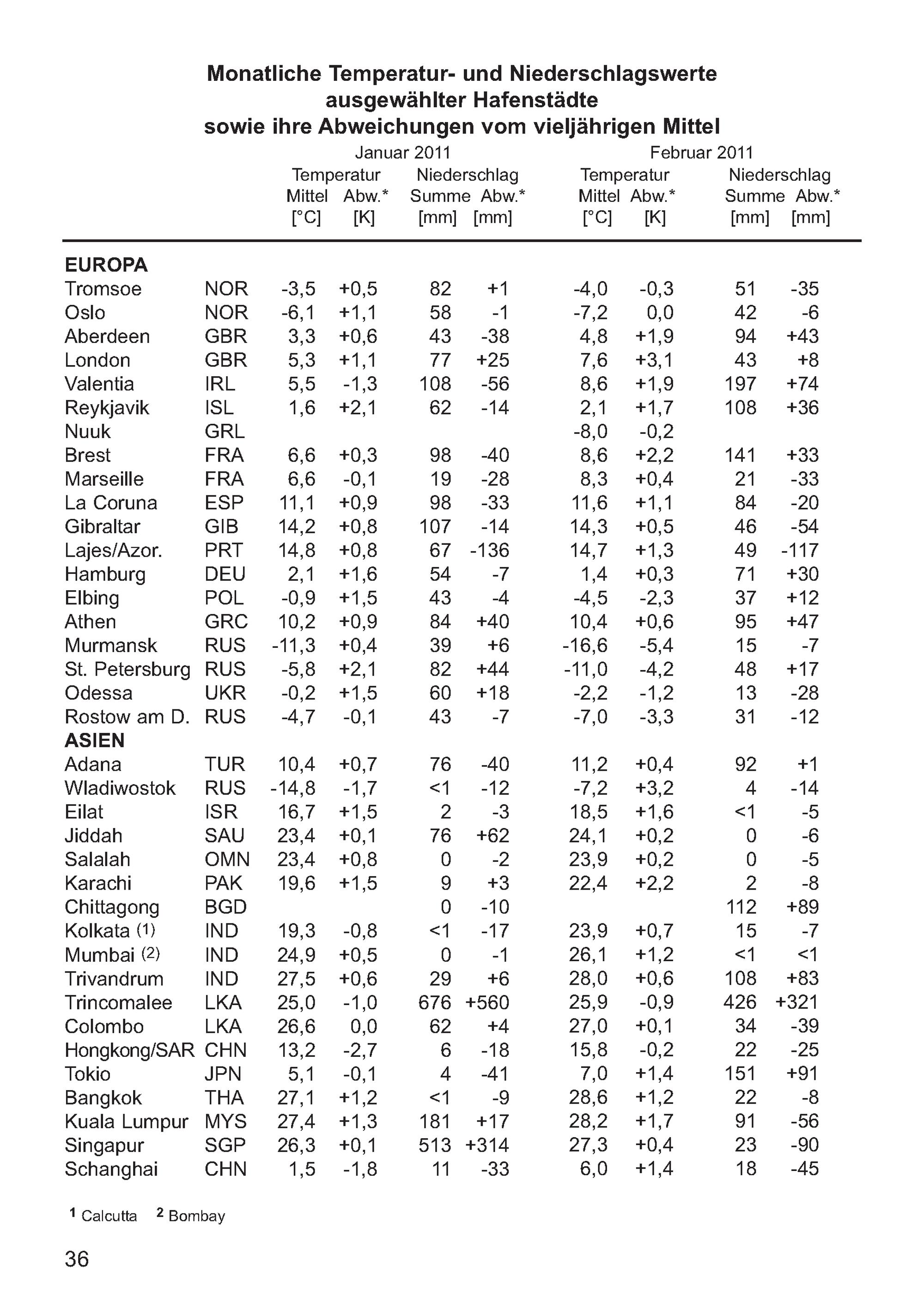 Monatliche Temperatur- und Niederschlagswerte ausgewählter Hafenstädte im Januar...