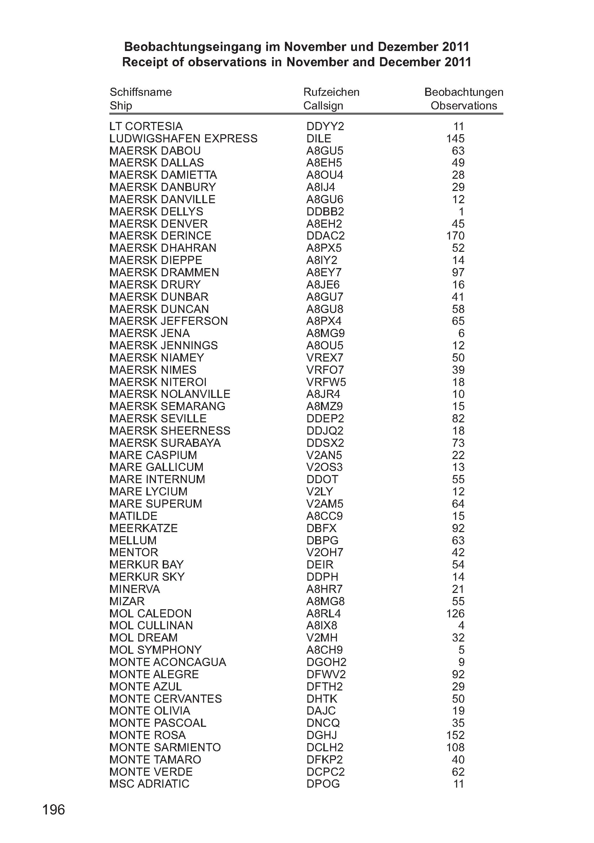 Beobachtungseingang im November und Dezember 2011 / Receipt of observations in November...