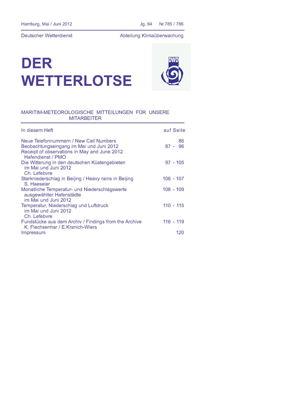 Beobachtungseingang im Mai und Juni 2012 / Receipt of observations in May and June 2012