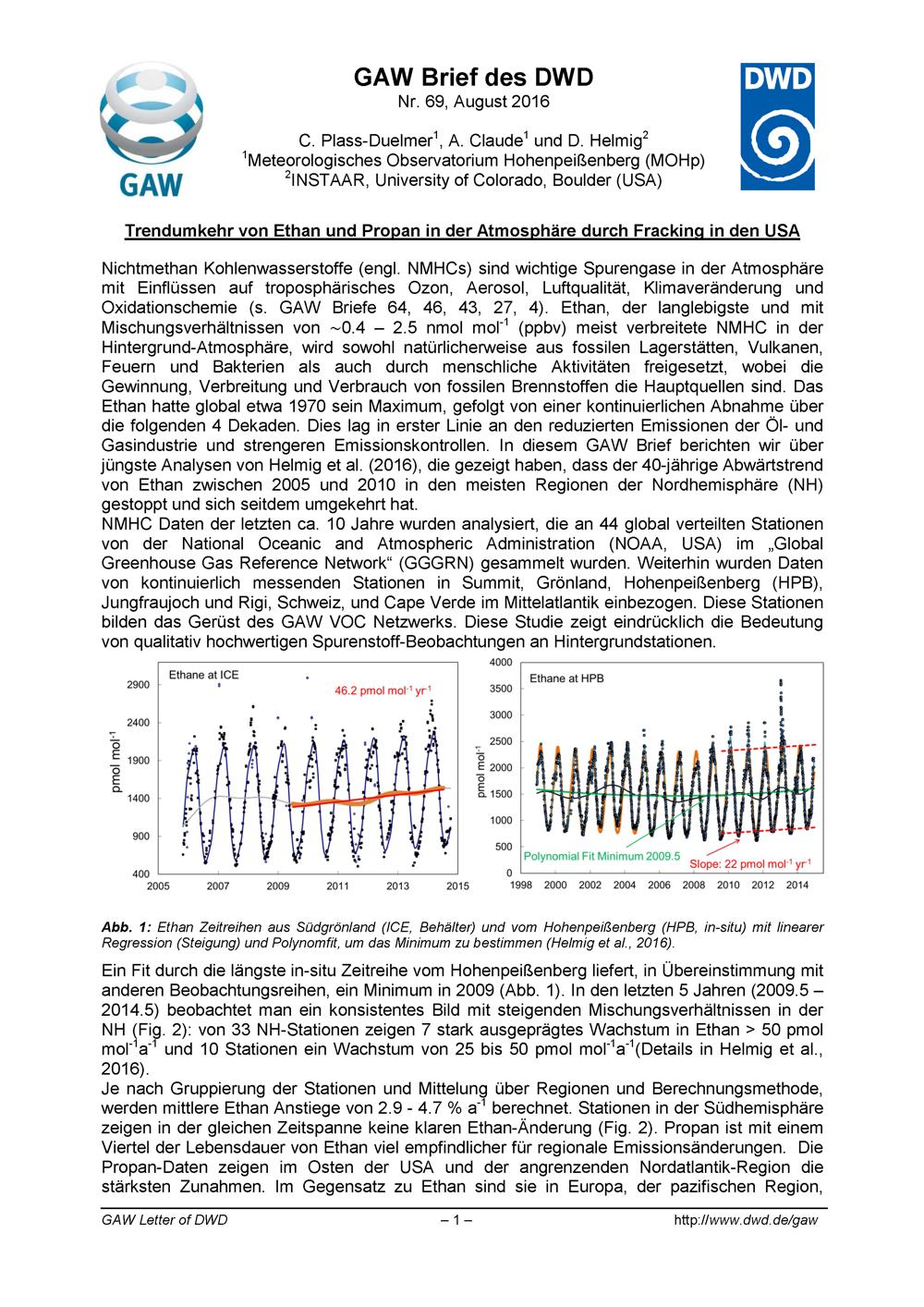 69 (2016) Trendumkehr von Ethan und Propan in der Atmosphäre durch Fracking in den...