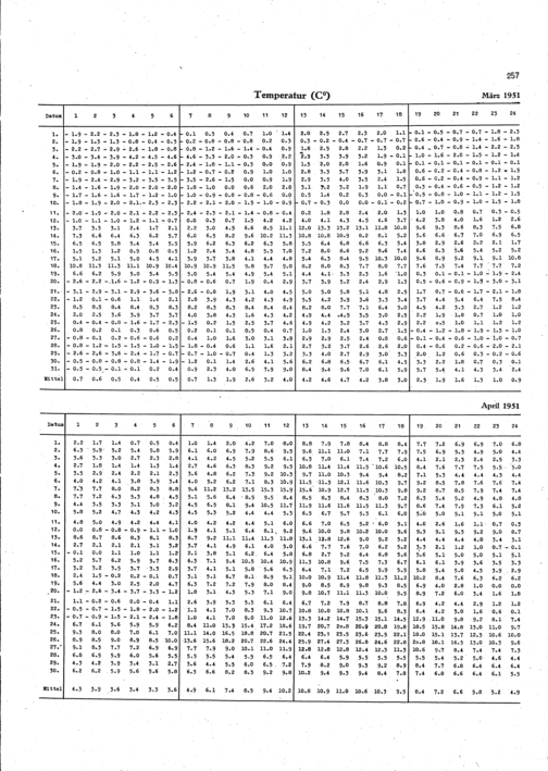 Stündliche Auswertungen von Registrierungen des Observatoriums Hamburg-Fuhlsbüttel...
