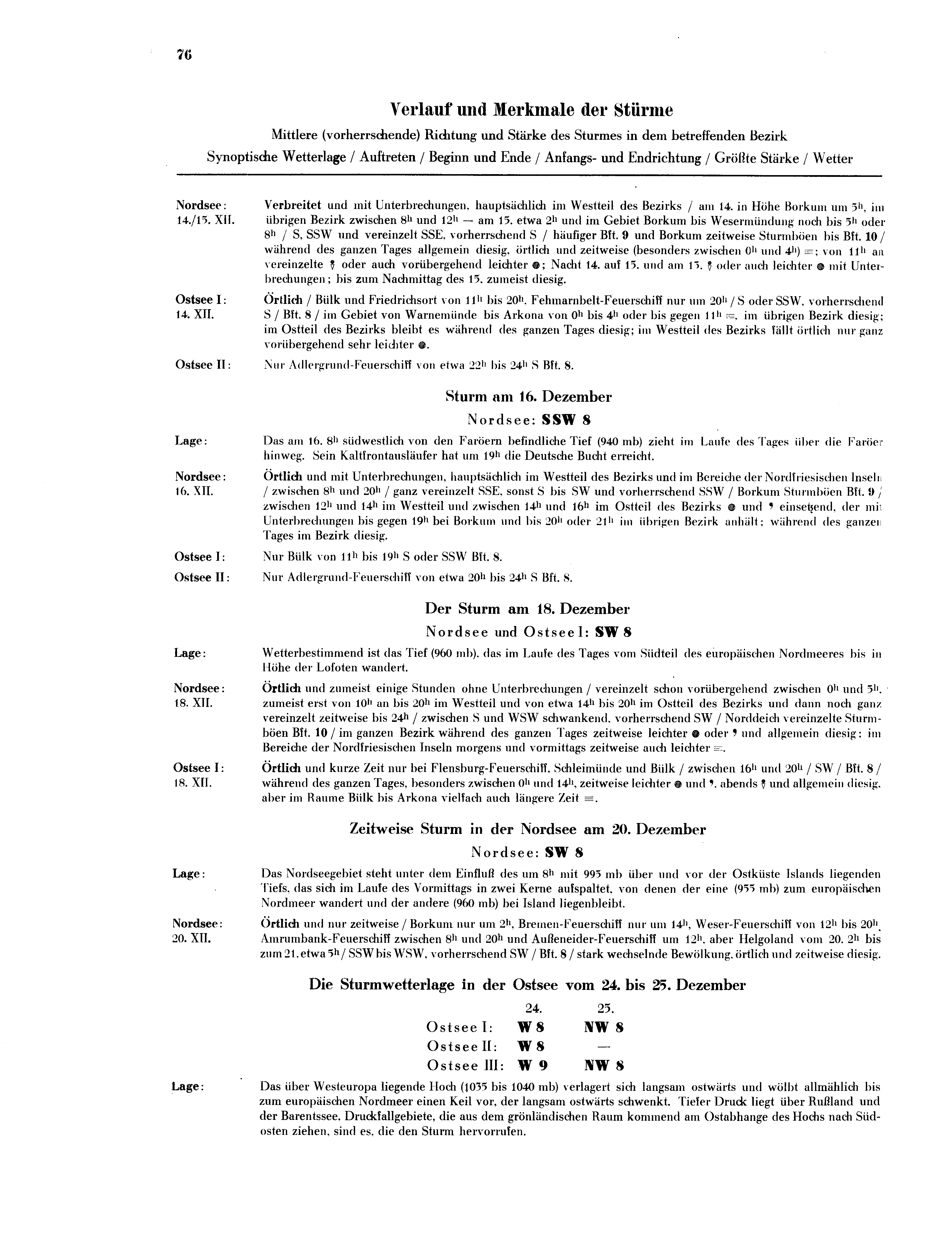 Verlauf und Merkmale der Stürme