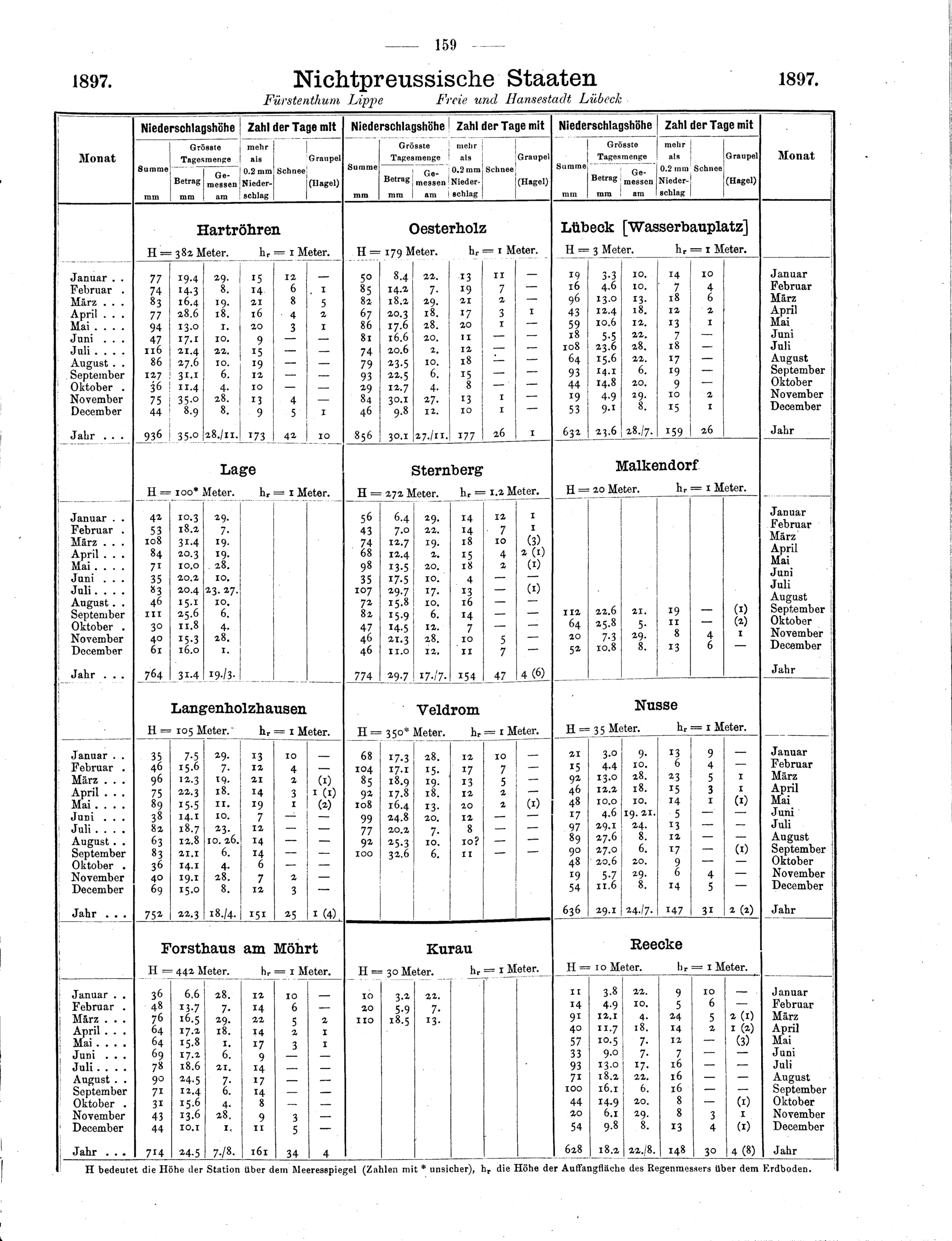 I. Monats- und Jahres-Uebersichten (Anordnung der Stationen nach Kreisen)