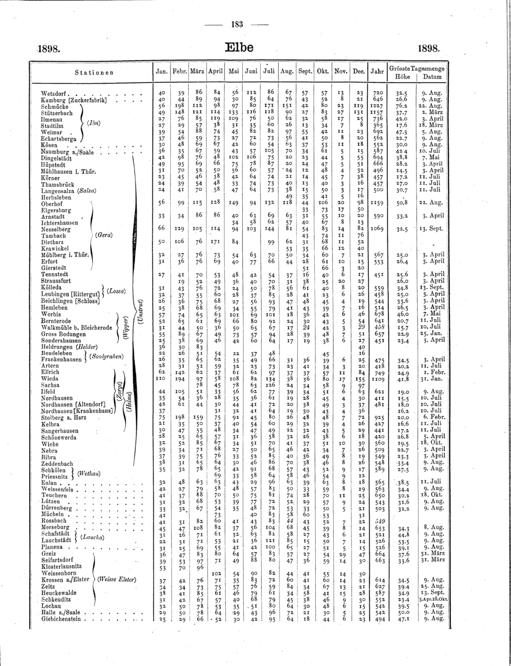 II. Monats- und Jahres-Summen, sowie grösste Tagesmengen (Anordnung der Stationen...