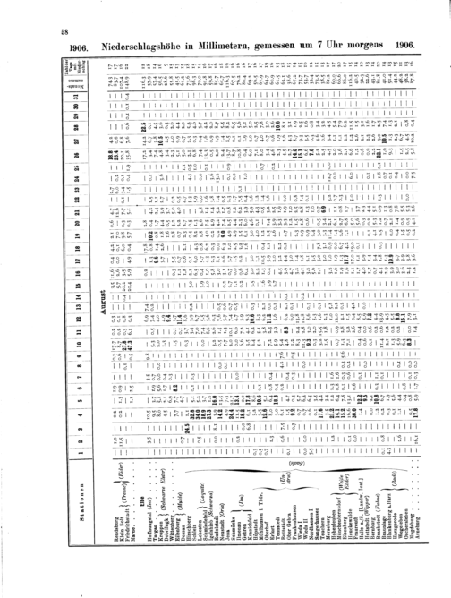 1. Tägliche Niederschlagshöhe (Anordnung der Stationen nach Flußgebieten)