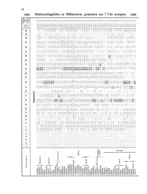 1. Tägliche Niederschlagshöhe (Anordnung der Stationen nach Flußgebieten)