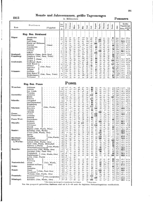 II. Monats- und Jahressummen, sowie größte Tagesmengen 1913 (Anordnung der Stationen nach...