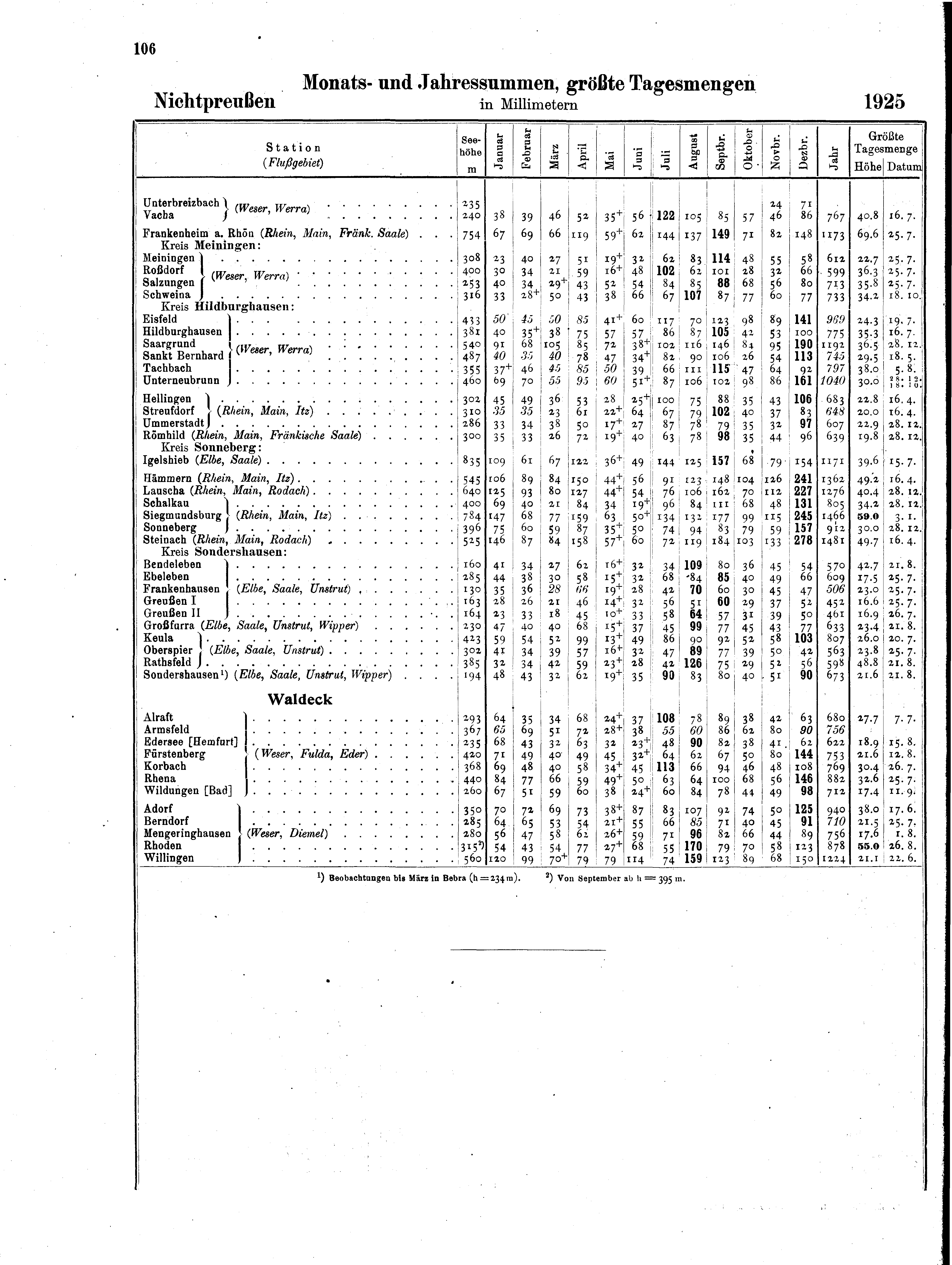 II. Monats- und Jahressummen sowie größte Tagesmengen (Anordnung der Stationen n...