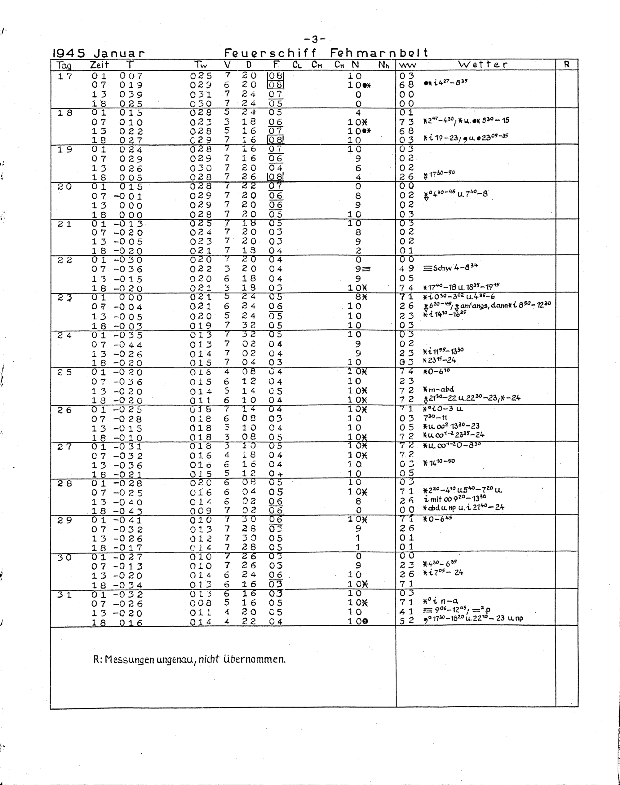 Terminbeobachtungen der Feuerschiffe HR 1, Elbe 1, Fehmarnbelt