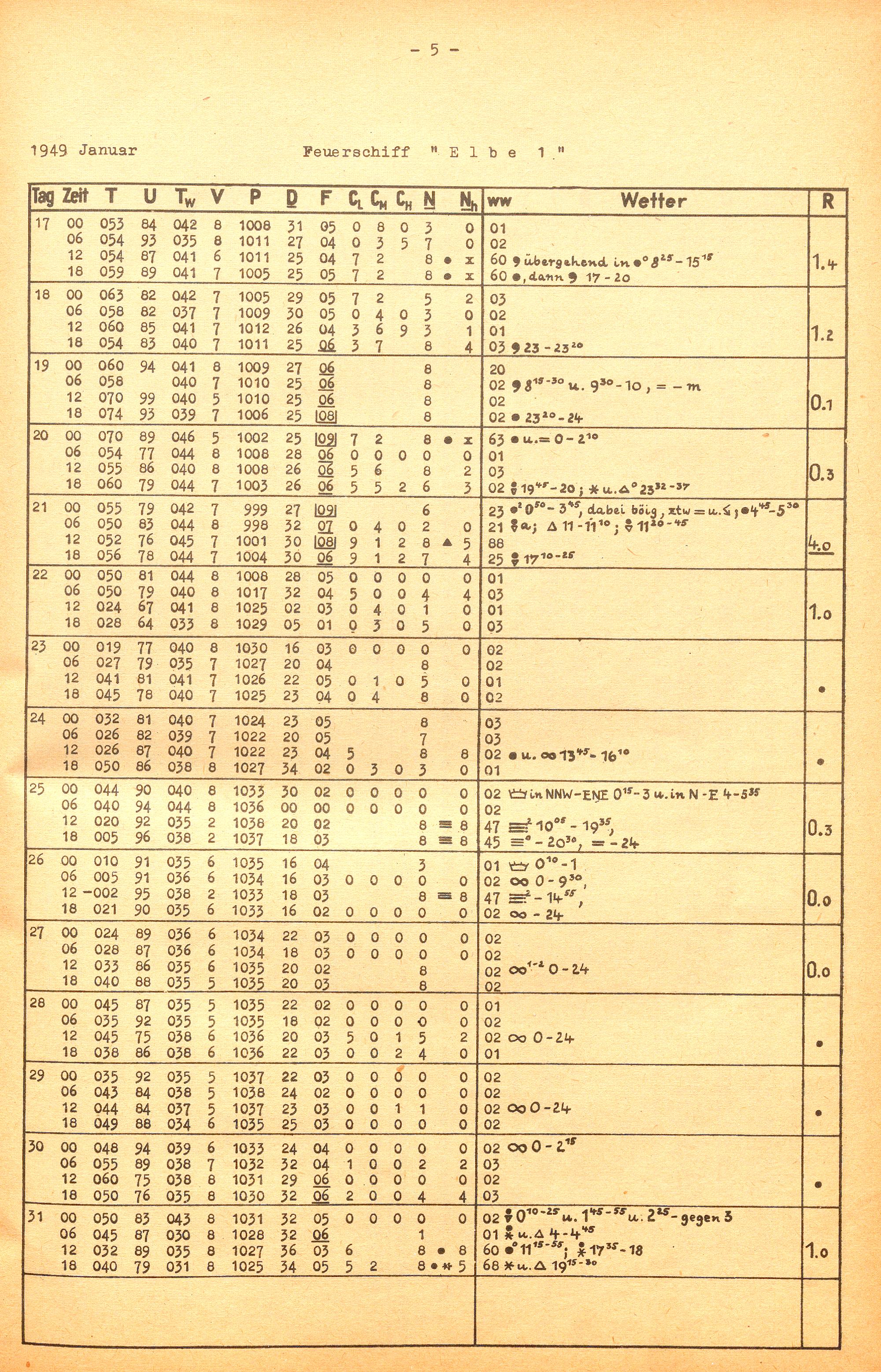 Termin-, Monats- und Jahresmittel für die Feuerschiffe S 2, HR 1, P 11, P 15, Weser, Elbe 1, Flensburg, Kiel, Fehmarnbelt