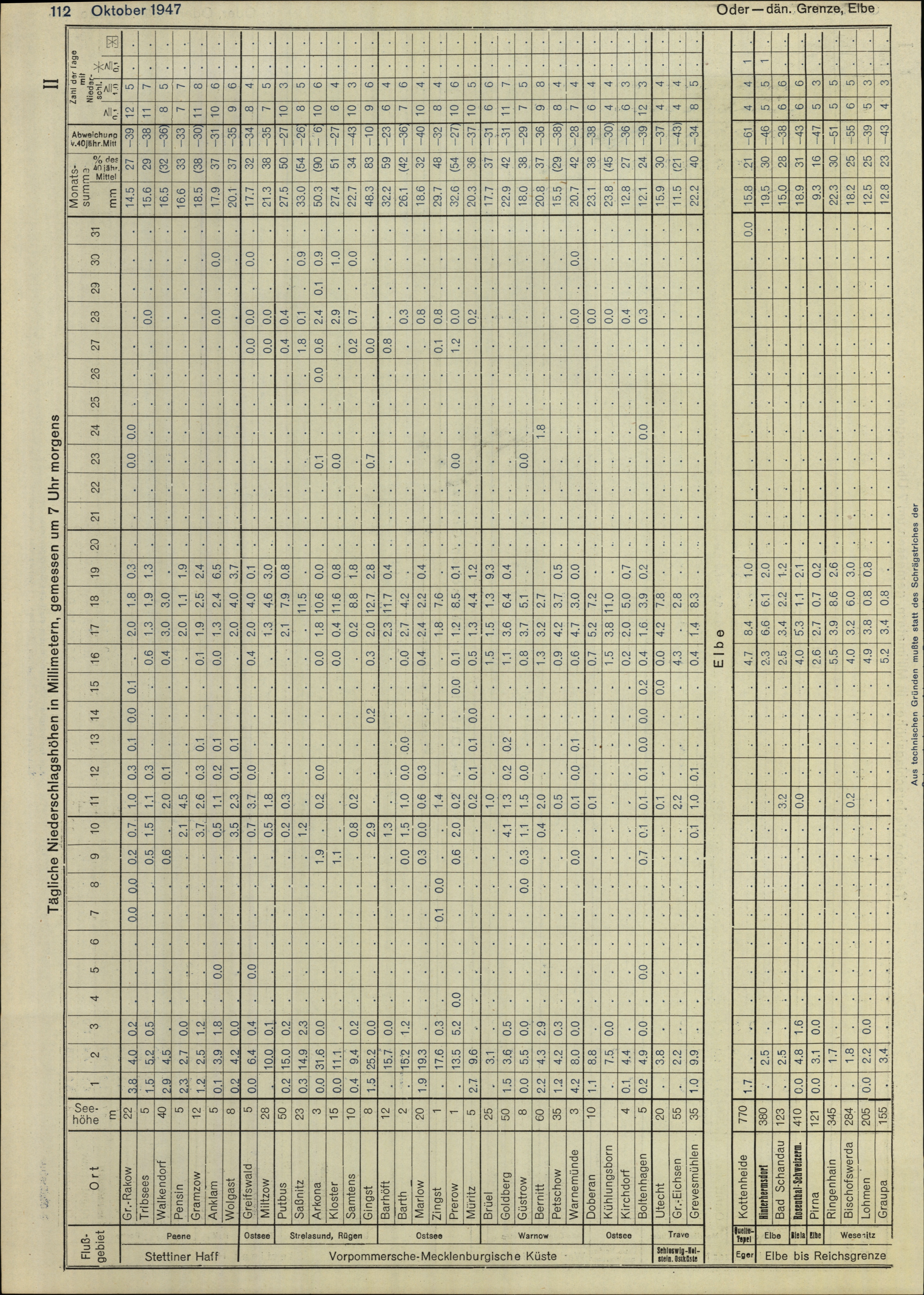 Tagesmengen von 50 mm und mehr / Stark- und Dauerregen / Anordnung der Stationen nach Flußgebieten
