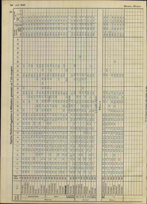 Tagesmengen von 50 mm und mehr / Stark- und Dauerregen / Anordnung der Stationen nach Flußgebieten