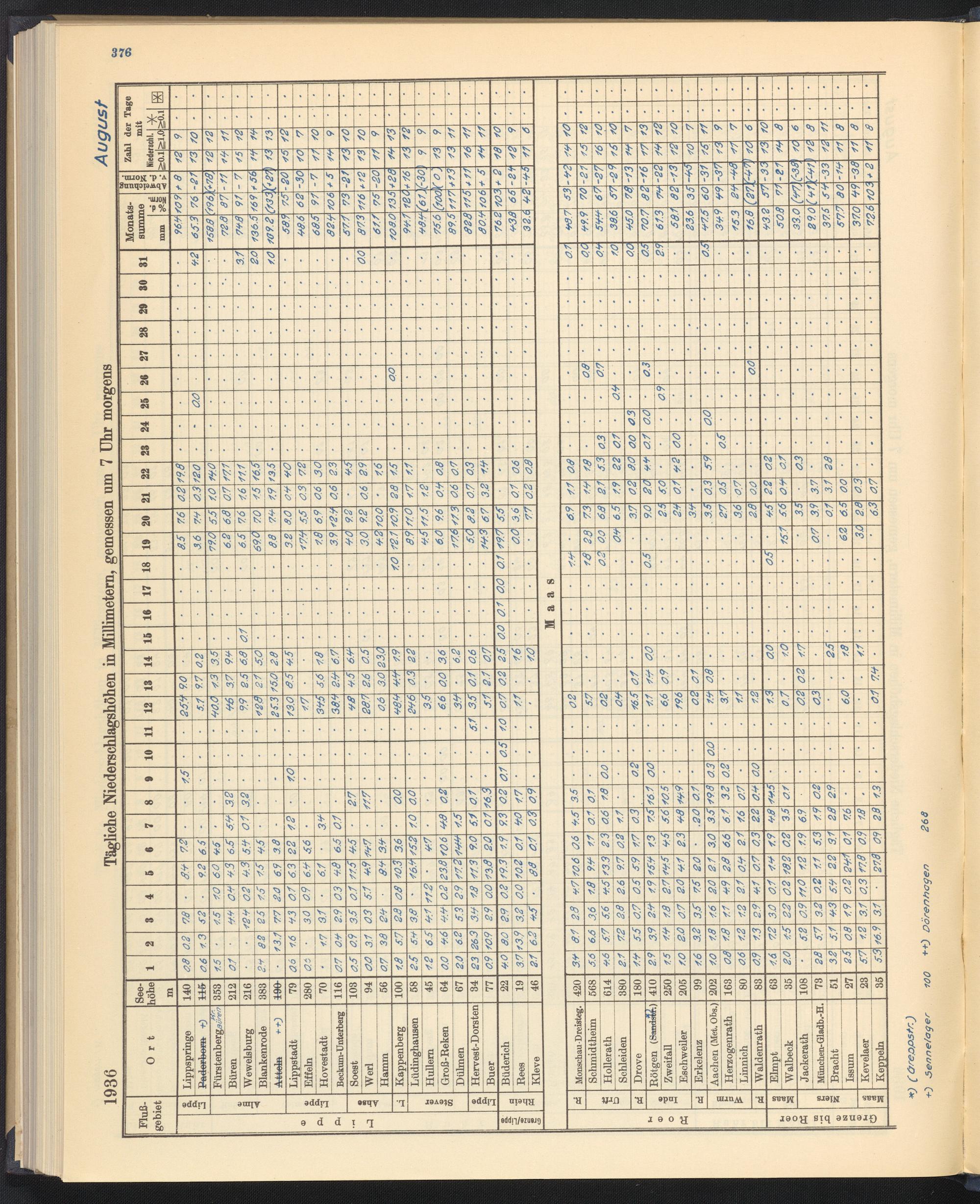 Tägliche Niederschlagshöhen