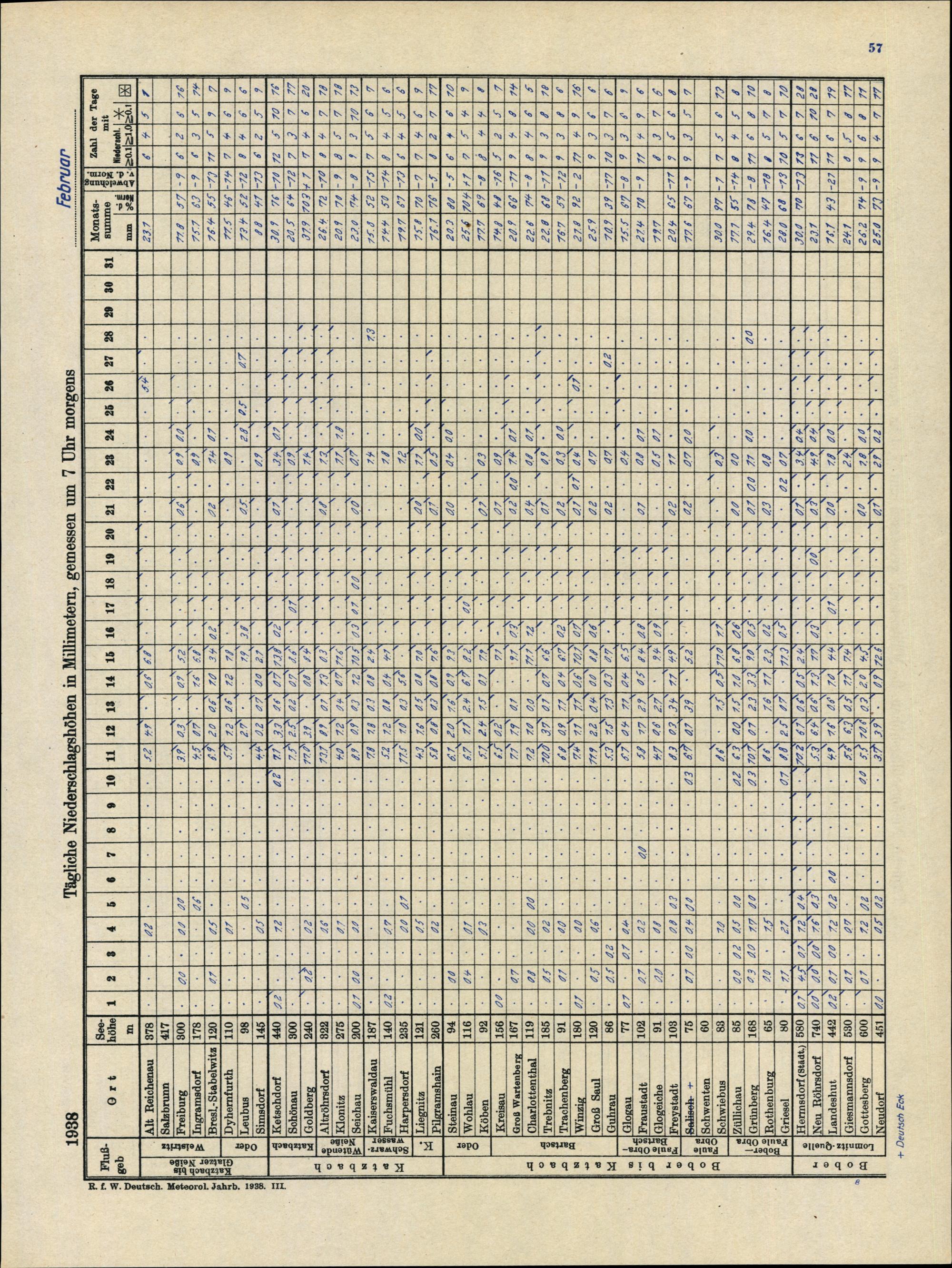 Tägliche Niederschlagshöhen