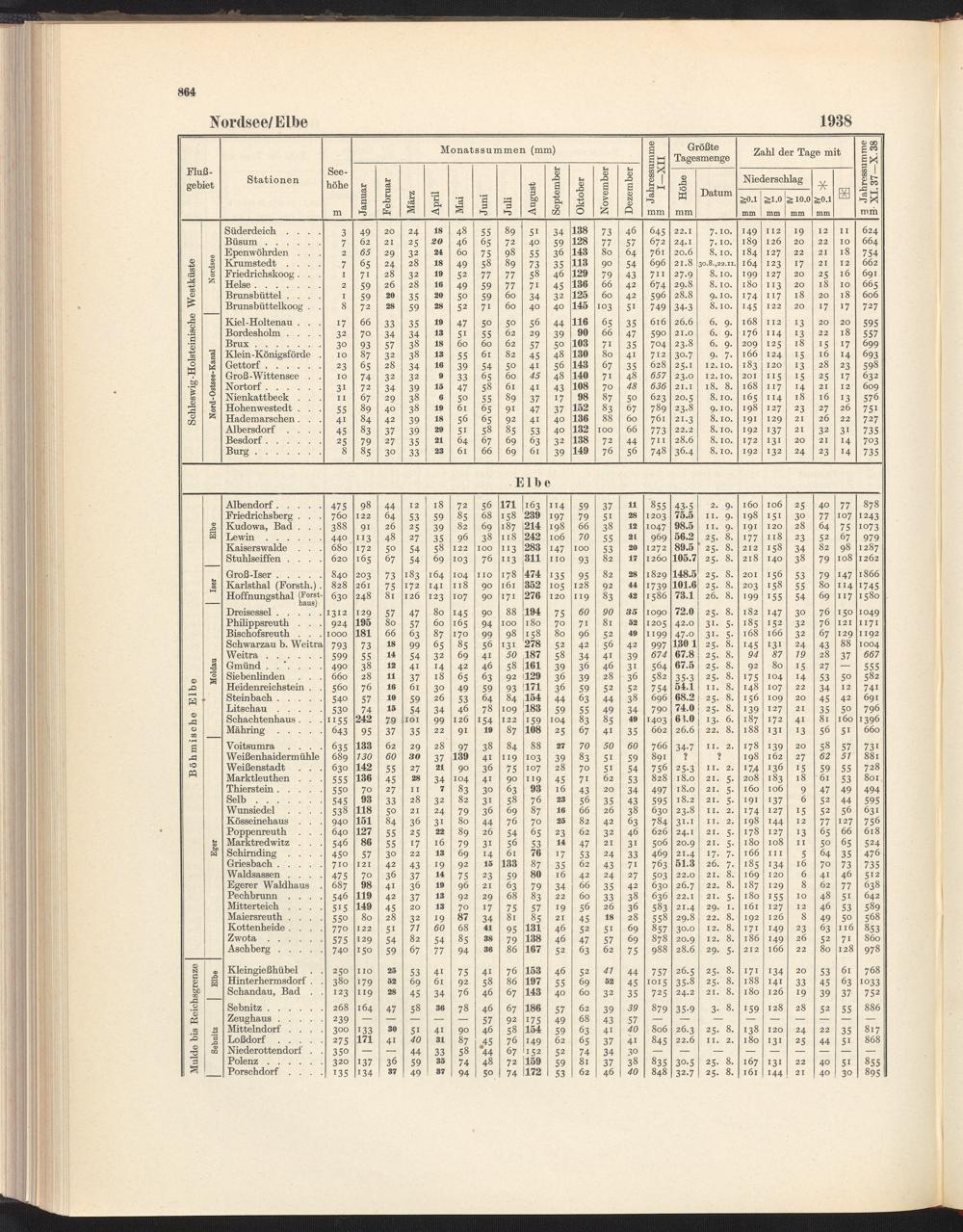 Monats- und Jahressummen, größte Tagesmengen