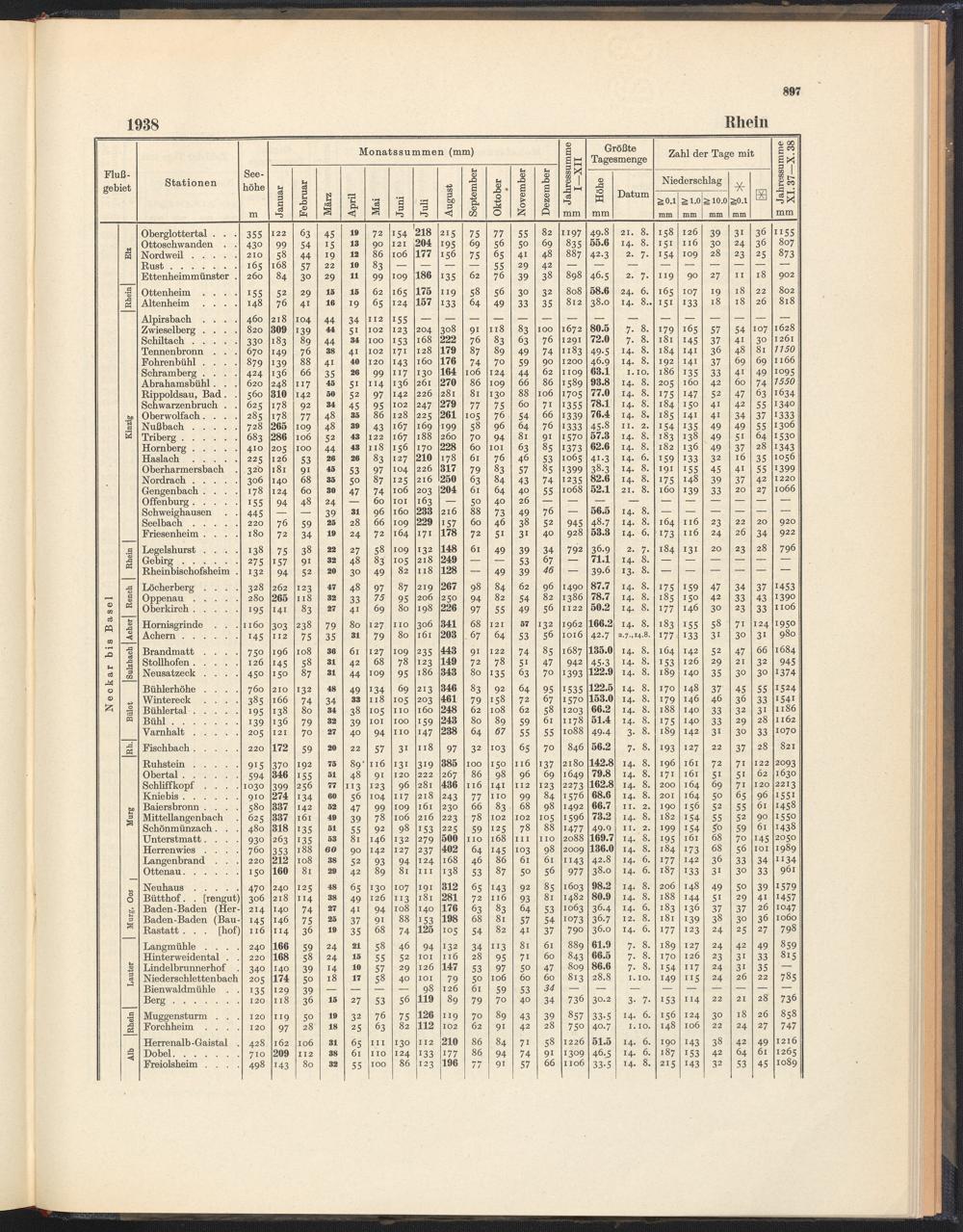 Monats- und Jahressummen, größte Tagesmengen