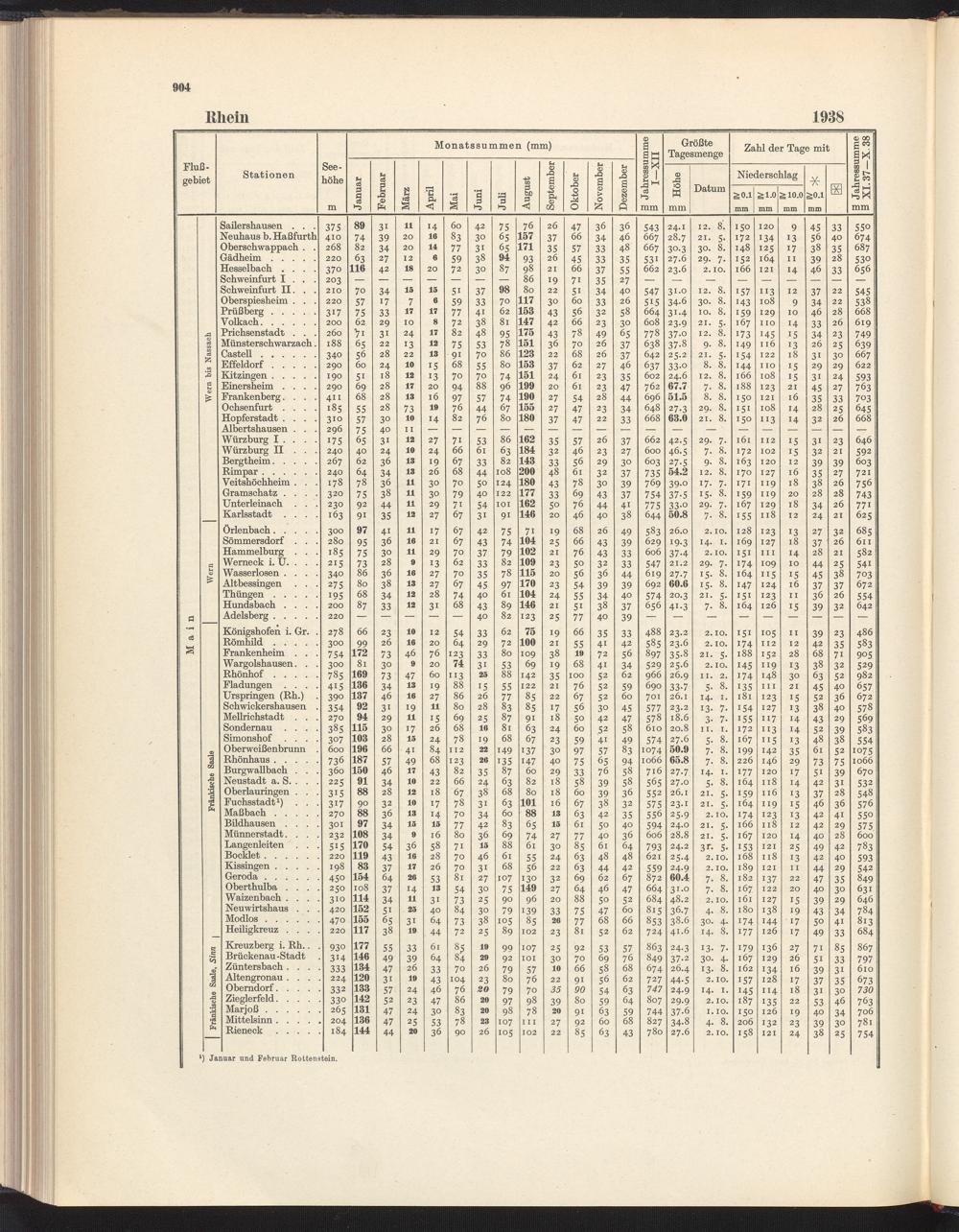 Monats- und Jahressummen, größte Tagesmengen