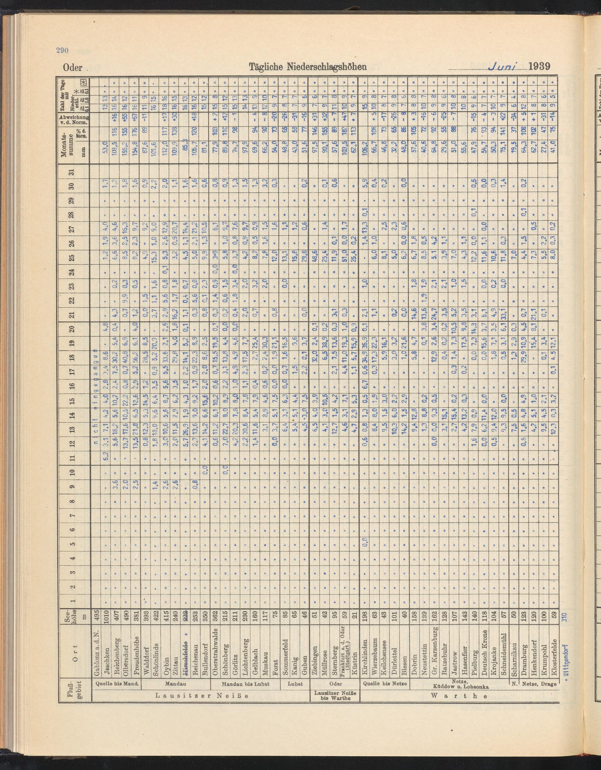 Tägliche Niederschlagshöhen