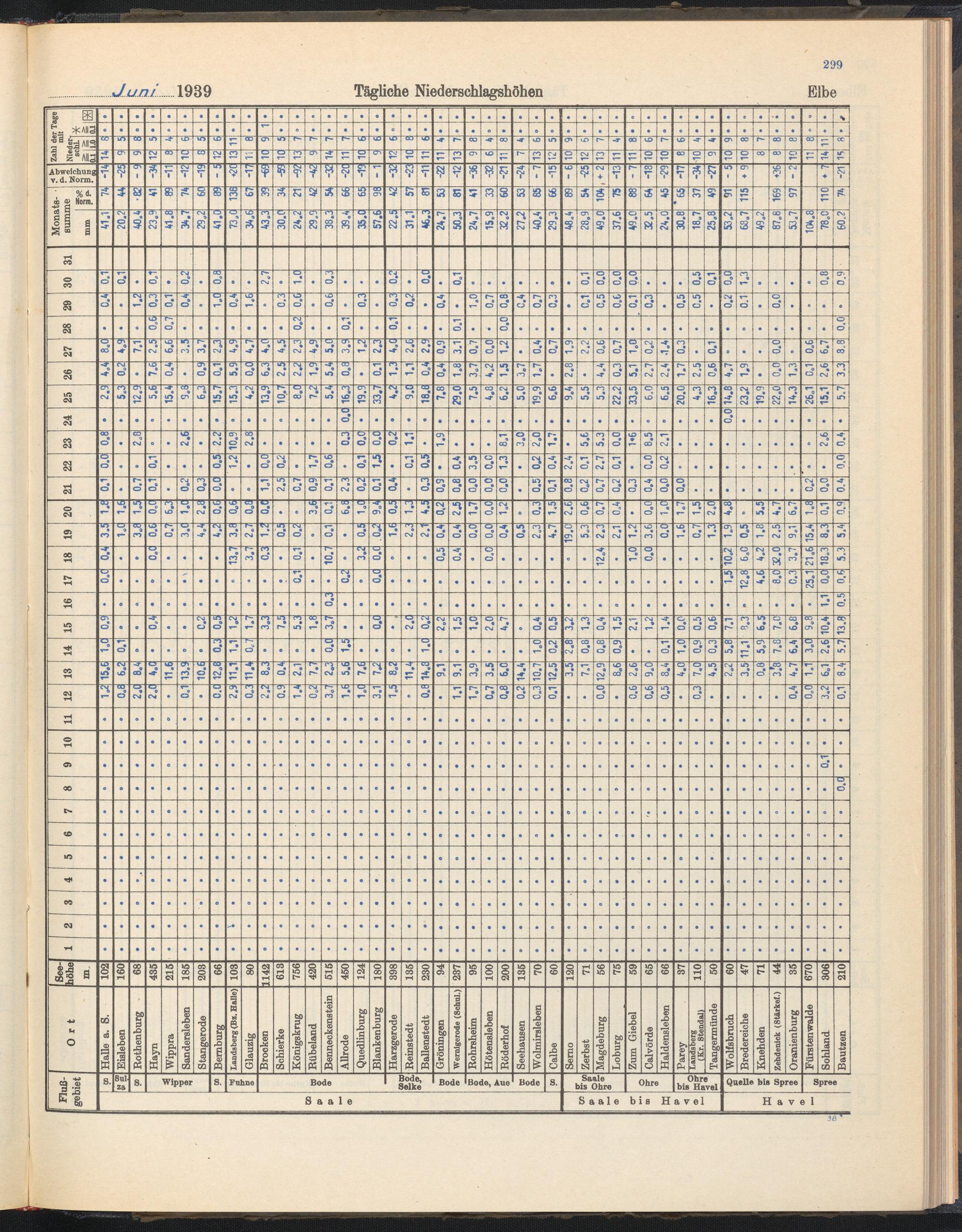 Tägliche Niederschlagshöhen
