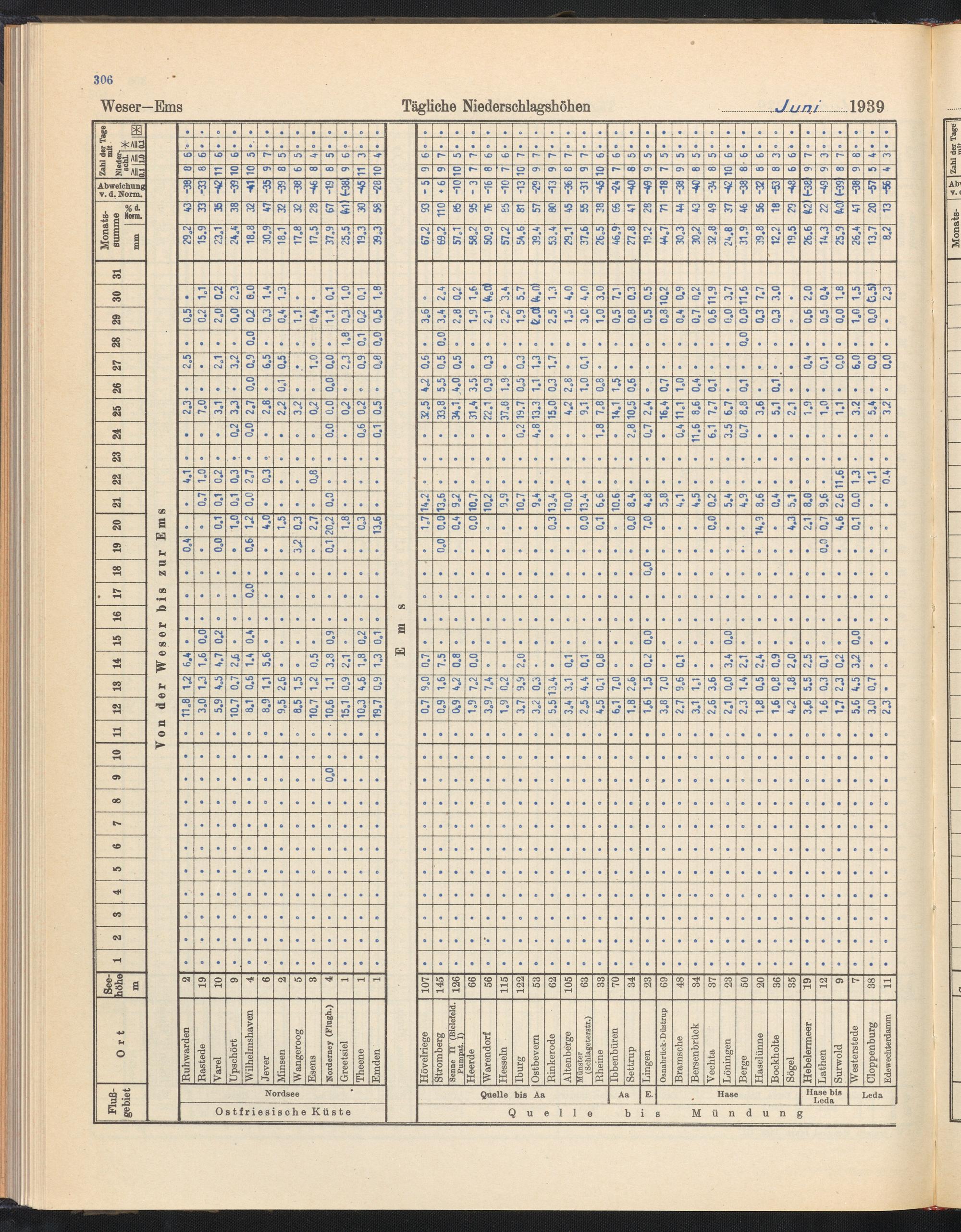 Tägliche Niederschlagshöhen