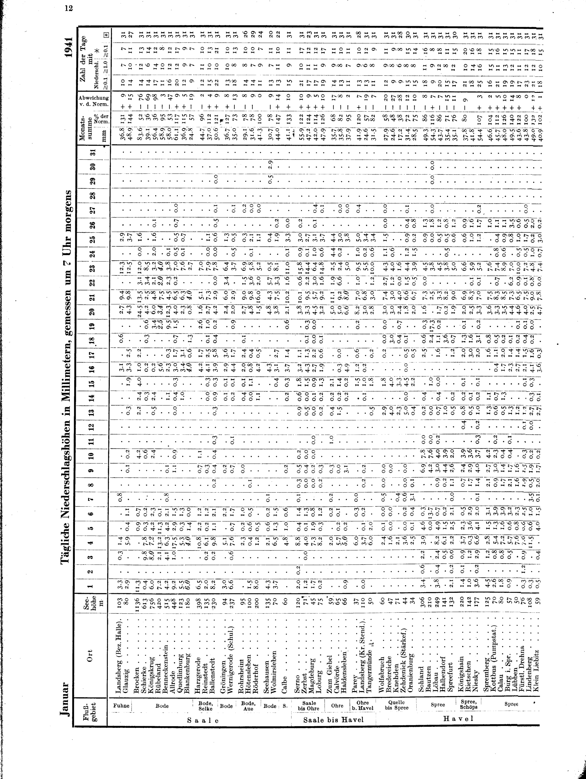 Tägliche Niederschlagshöhen