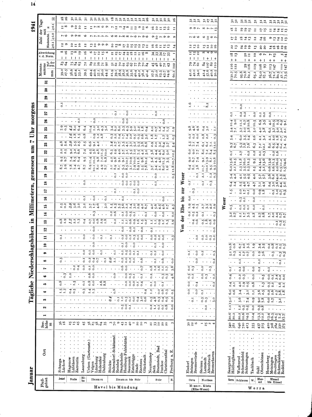 Tägliche Niederschlagshöhen