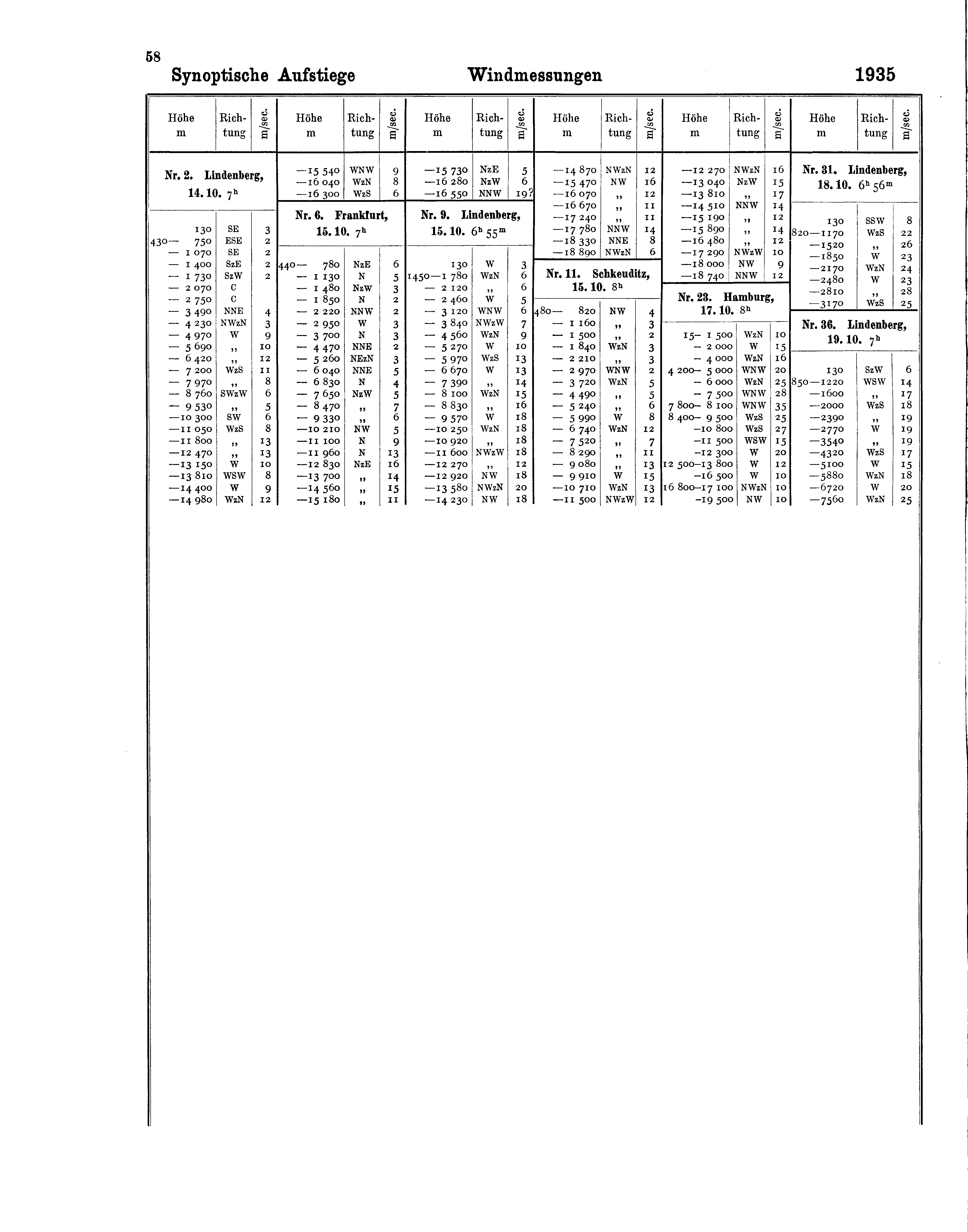 Synoptische Aufstiege in Breslau, Frankfurt a.M., Hamburg, Köln, Lindenberg, München,...