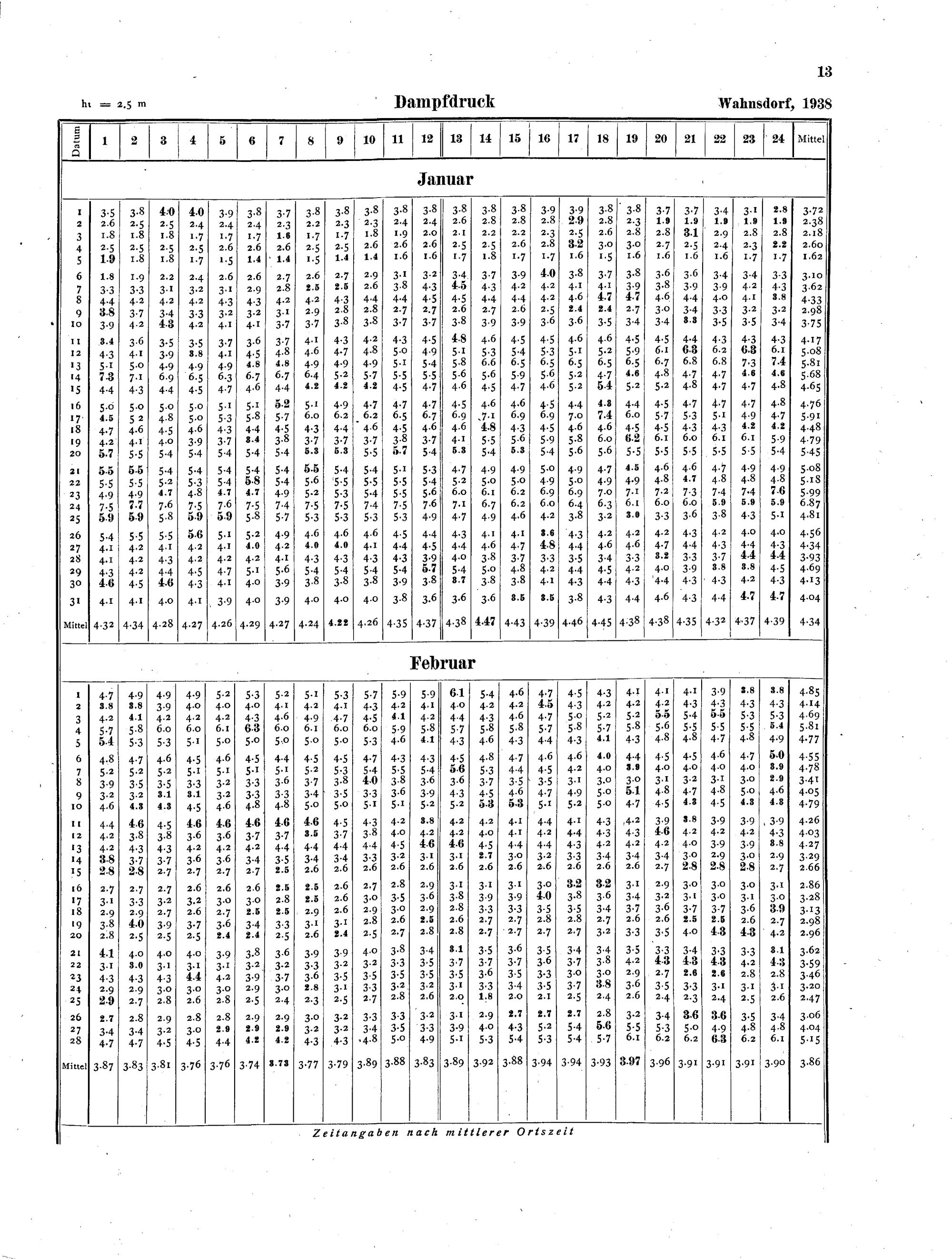 Niederschlag (Monatliche Niederschlagsmenge für jede Stunde, Gesamtdauer des Niederschlags in Stunden, Häufigkeit der einzelnen Niederschläge nach Stundenwerten der Menge, Häufigkeit der einzelnen Niederschläge nach Stufenwerten der Dauer)