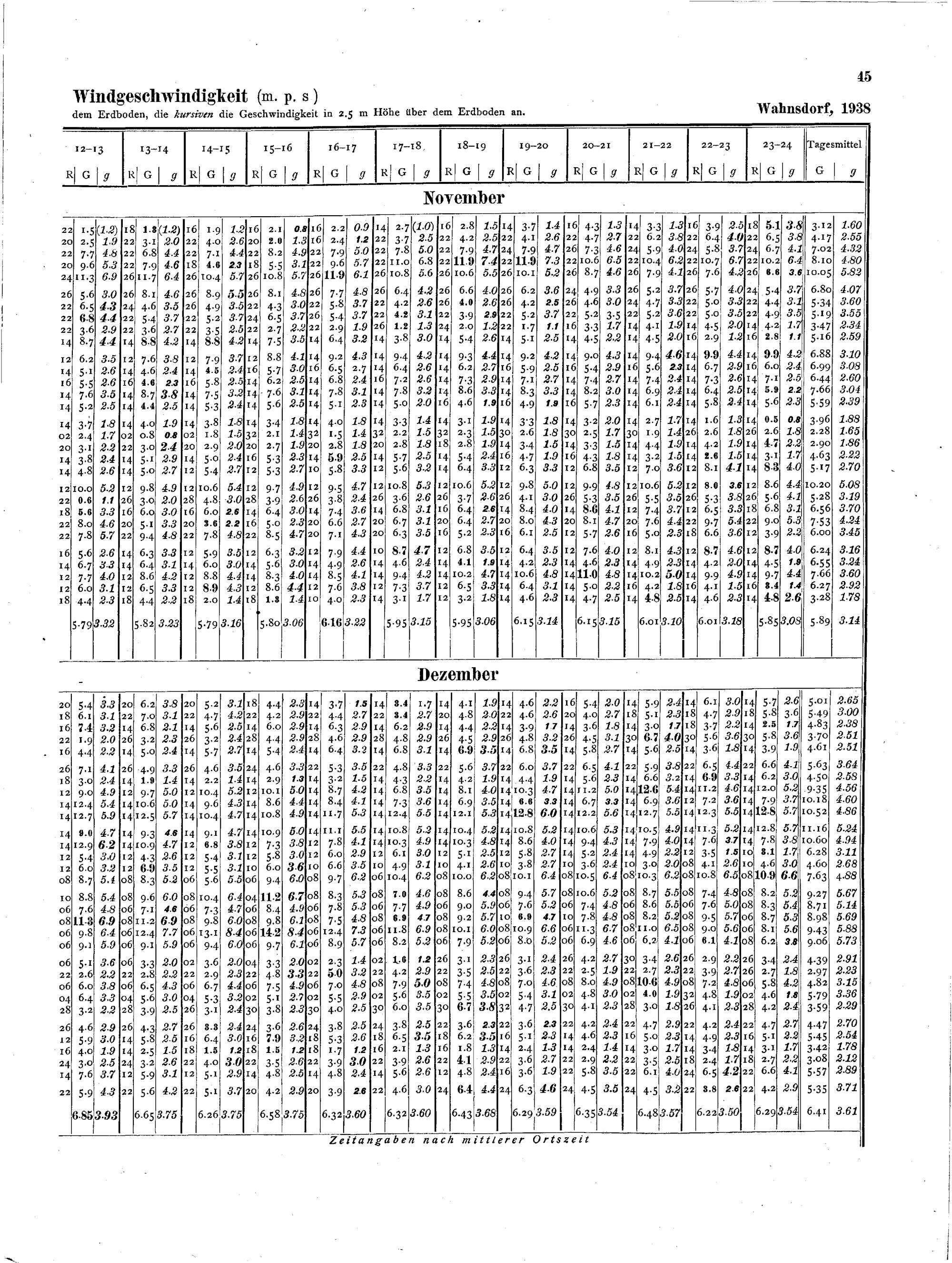 Niederschlag (Monatliche Niederschlagsmenge für jede Stunde, Gesamtdauer des Niederschlags in Stunden, Häufigkeit der einzelnen Niederschläge nach Stundenwerten der Menge, Häufigkeit der einzelnen Niederschläge nach Stufenwerten der Dauer)