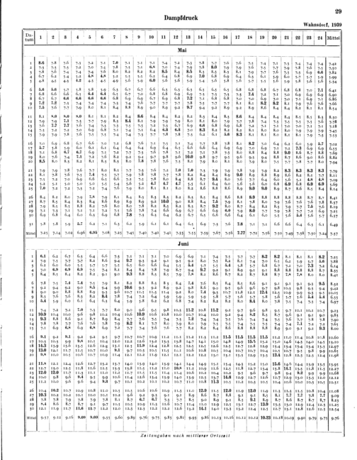 Jahresmittel von Luftdruck, Temperatur, Dampfdruck, Relativer Feuchtigkeit, Windgeschwindigkeit, Abkühlungsgröße, Sonnenscheindauer, Luftelektrischem Potentialgefälle und Leitfähigkeit, Bodentemperatur