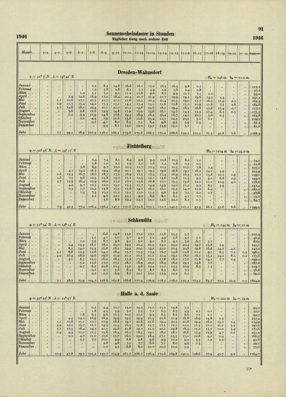 Sonnenscheinbeobachtungen