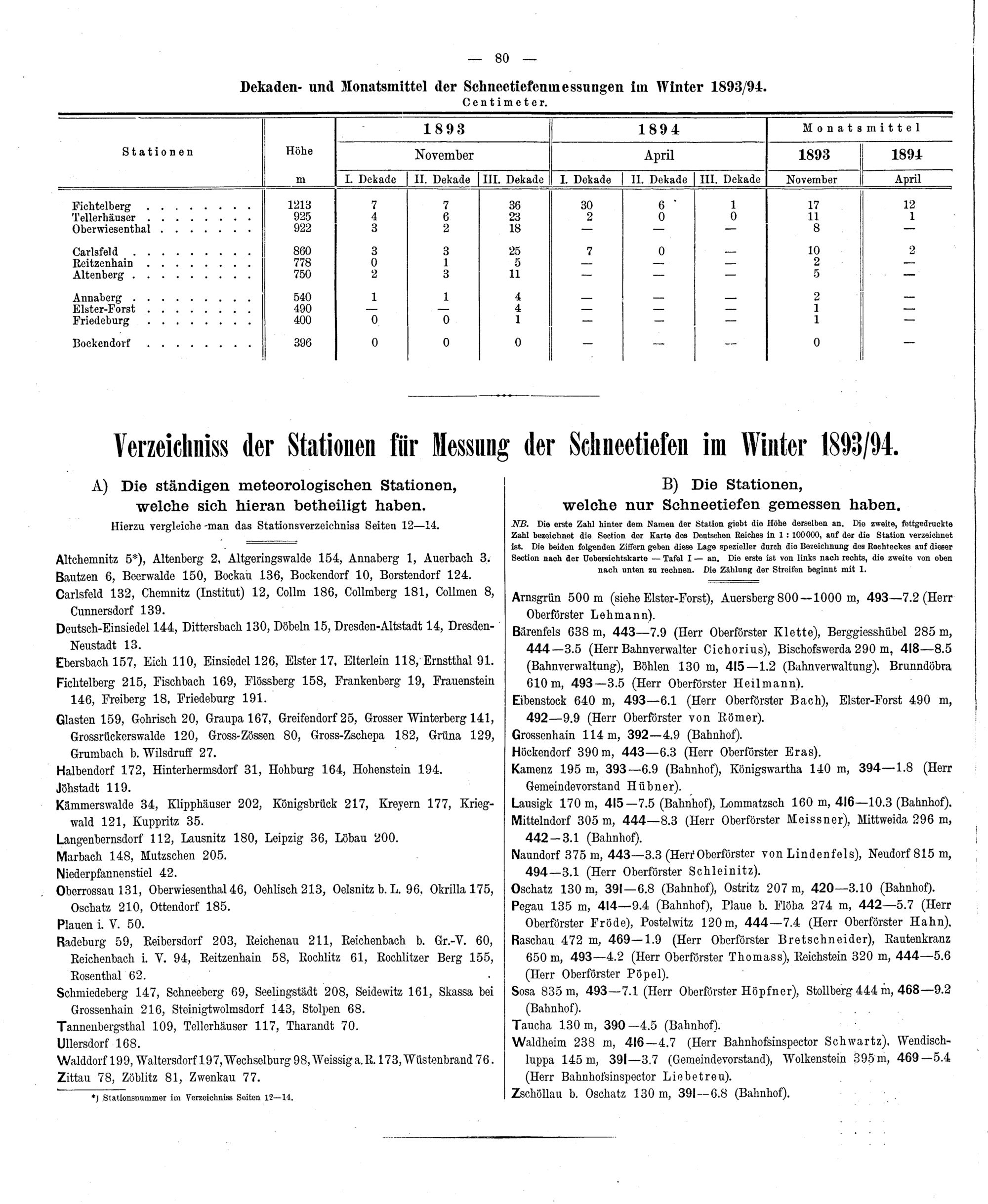 Anhang VI: Die Schneetiefenmessungen im Winter 1893/94