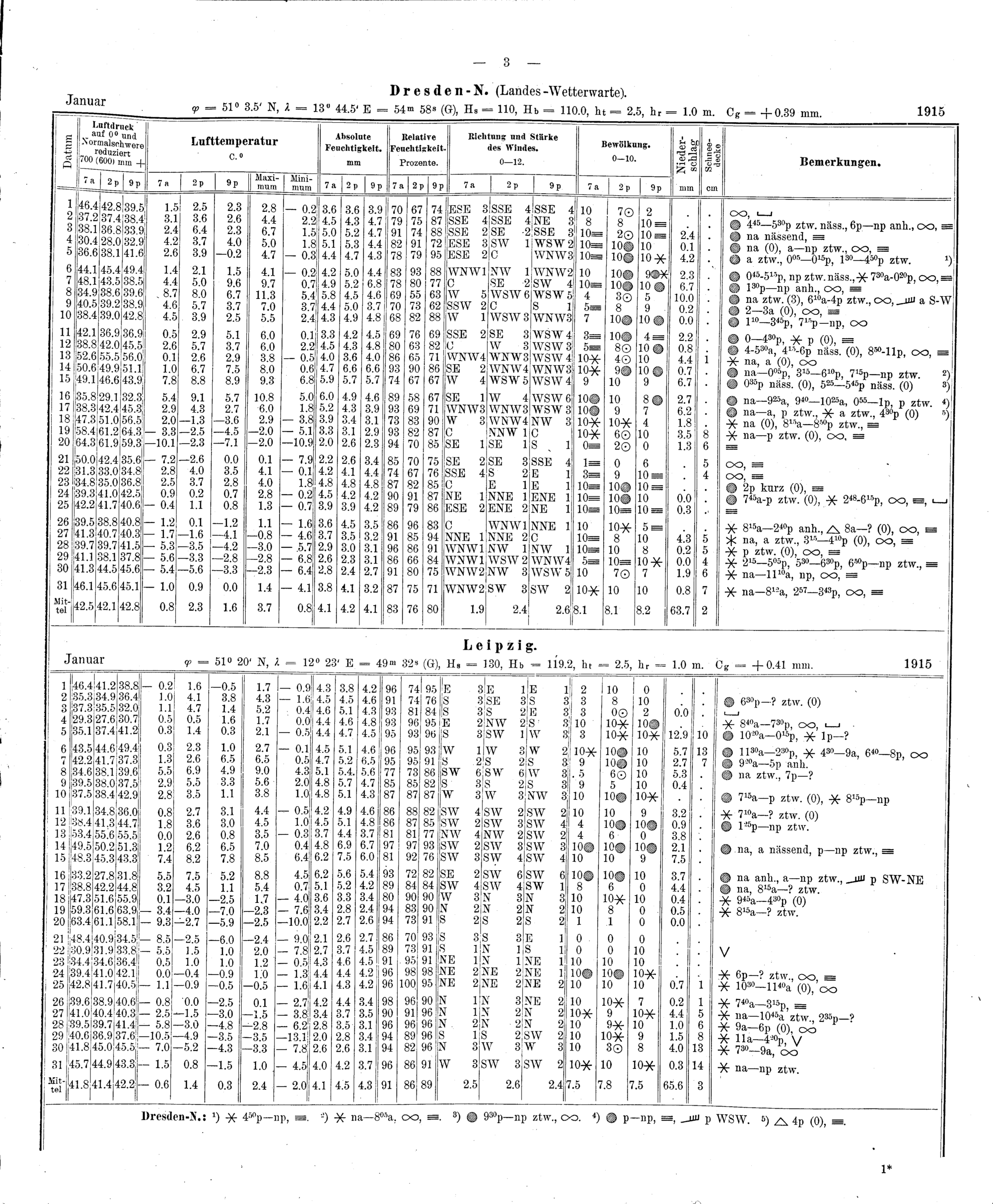 Beobachtungen im Jahre 1915 an den 10 Stationen II. Ordnung: Dresden-N. (Landes-Wetterwarte), Leipzig, Bautzen, Zittau, Chemnitz, Freiberg, Schneeberg, Bad Elster, Altenberg und Reitzenhain