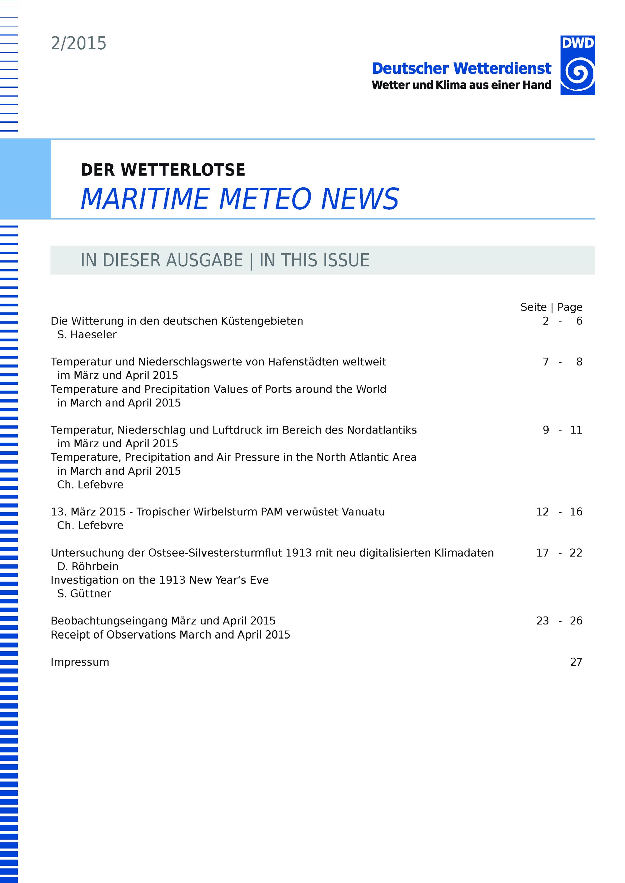 Temperatur, Niederschlag und Luftdruck im Bereich des Nordatlantiks im März und April 2015