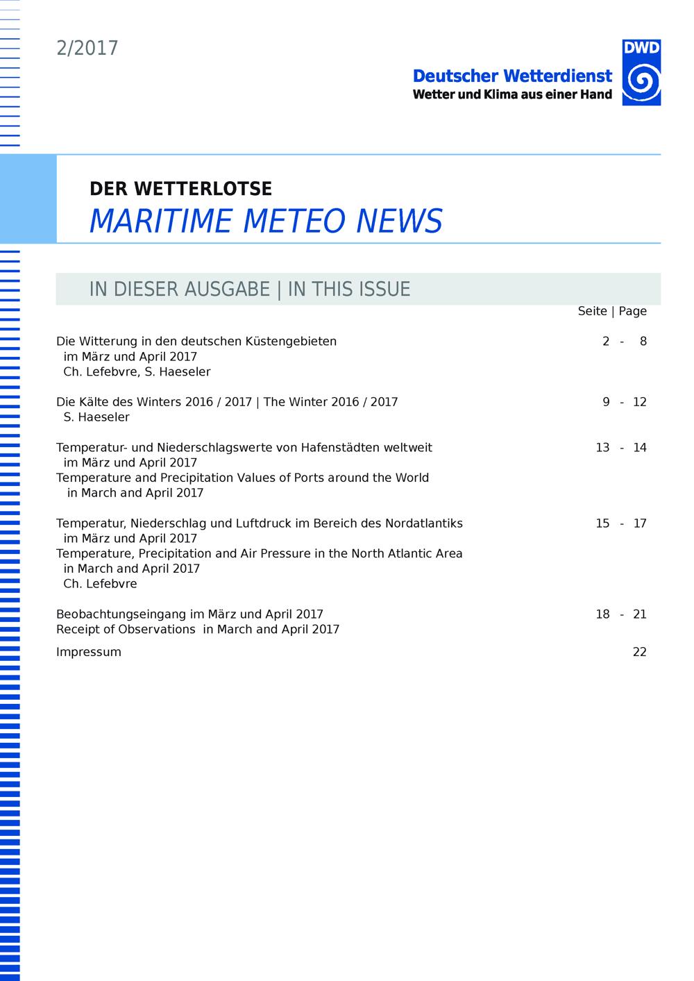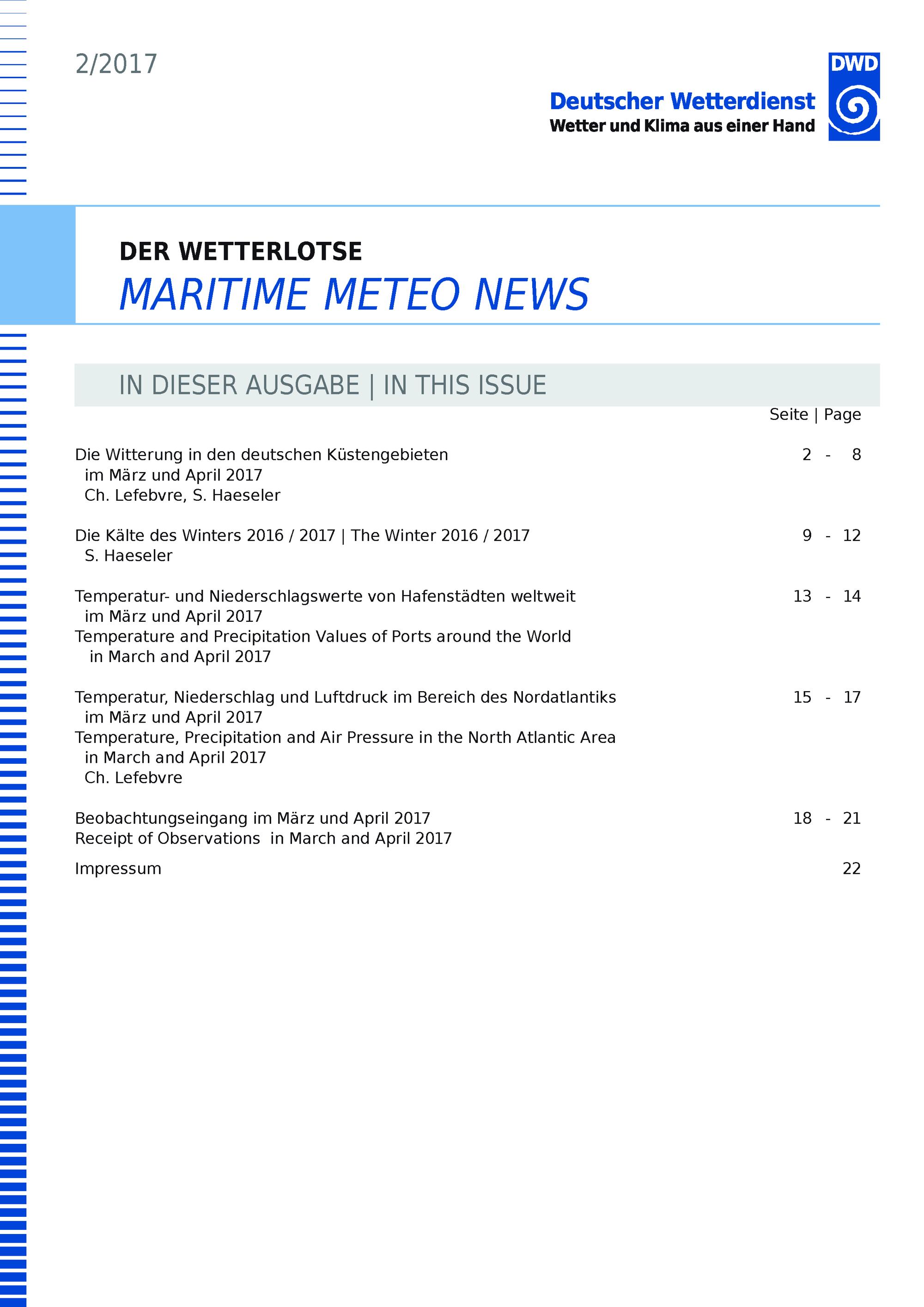 Die Witterung in den deutschen Küstengebieten im März und April 2017