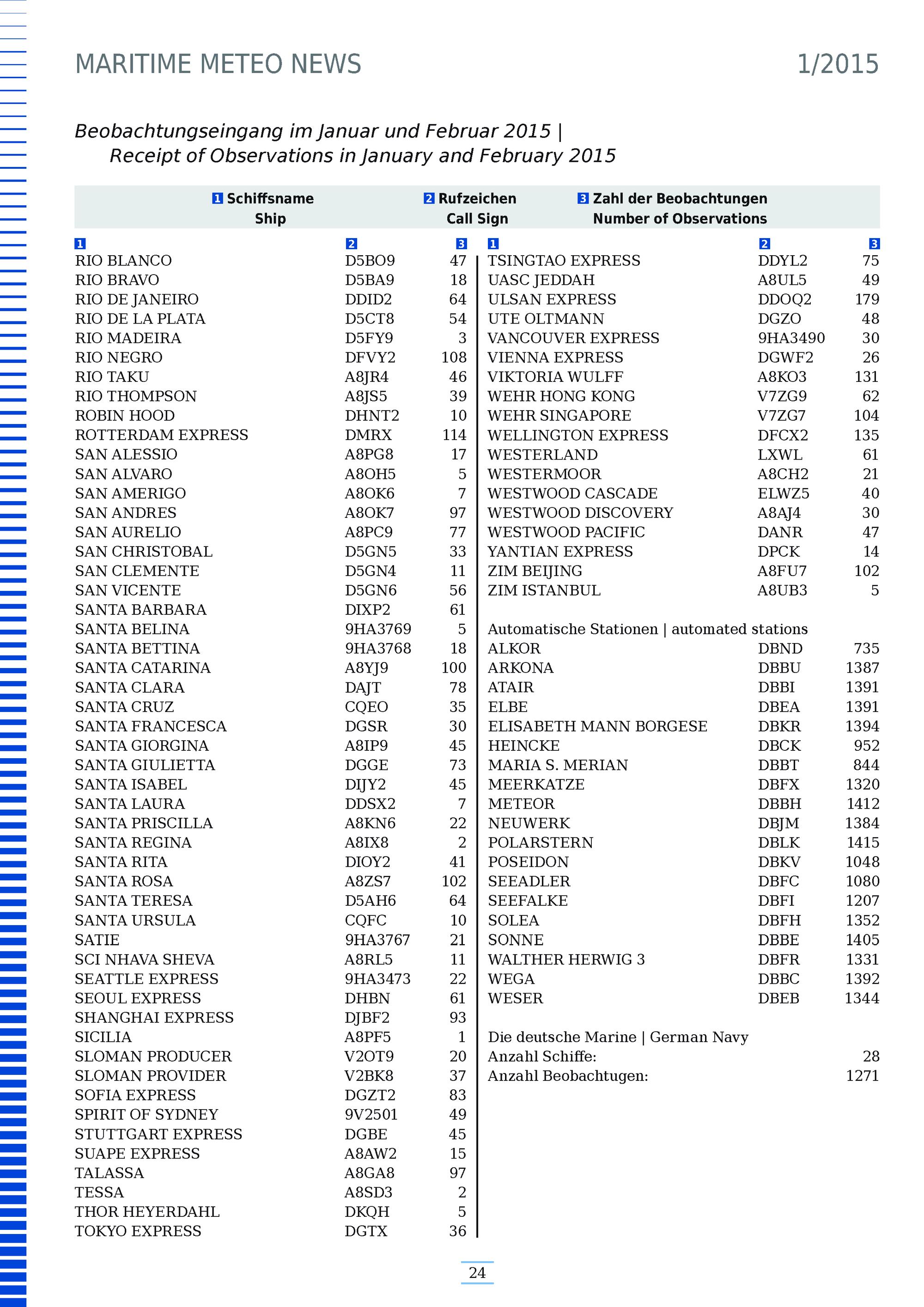 Temperatur und Niederschlagswerte von Hafenstädten weltweit im Januar und Februar 2015