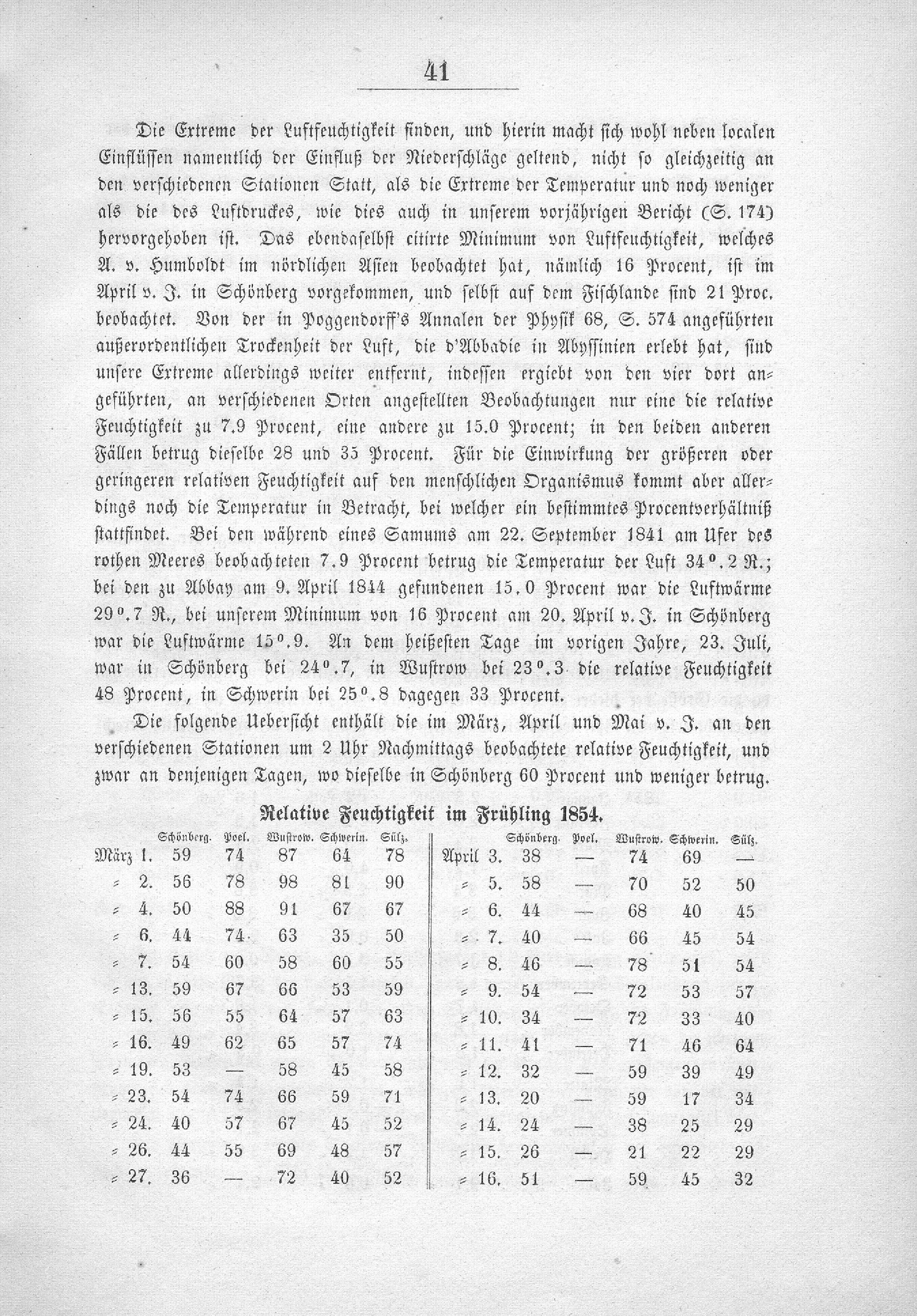 Die meteorologischen Beobachtungen in Mecklenburg im Jahre 1854