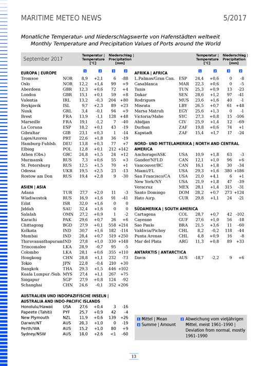 Temperatur- und Niederschlagswerte von Hafenstädten weltweit im September und Oktober 2017