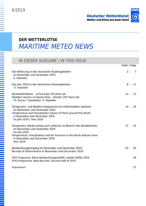 VOS Programm: Neue Beobachtungsschiffe, zweite Hälfte 2019
