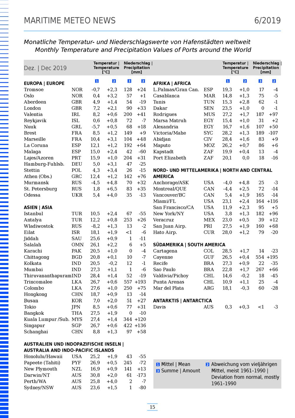 Temperatur- und Niederschlagswerte von Hafenstädten weltweit im November und Dezember 2019