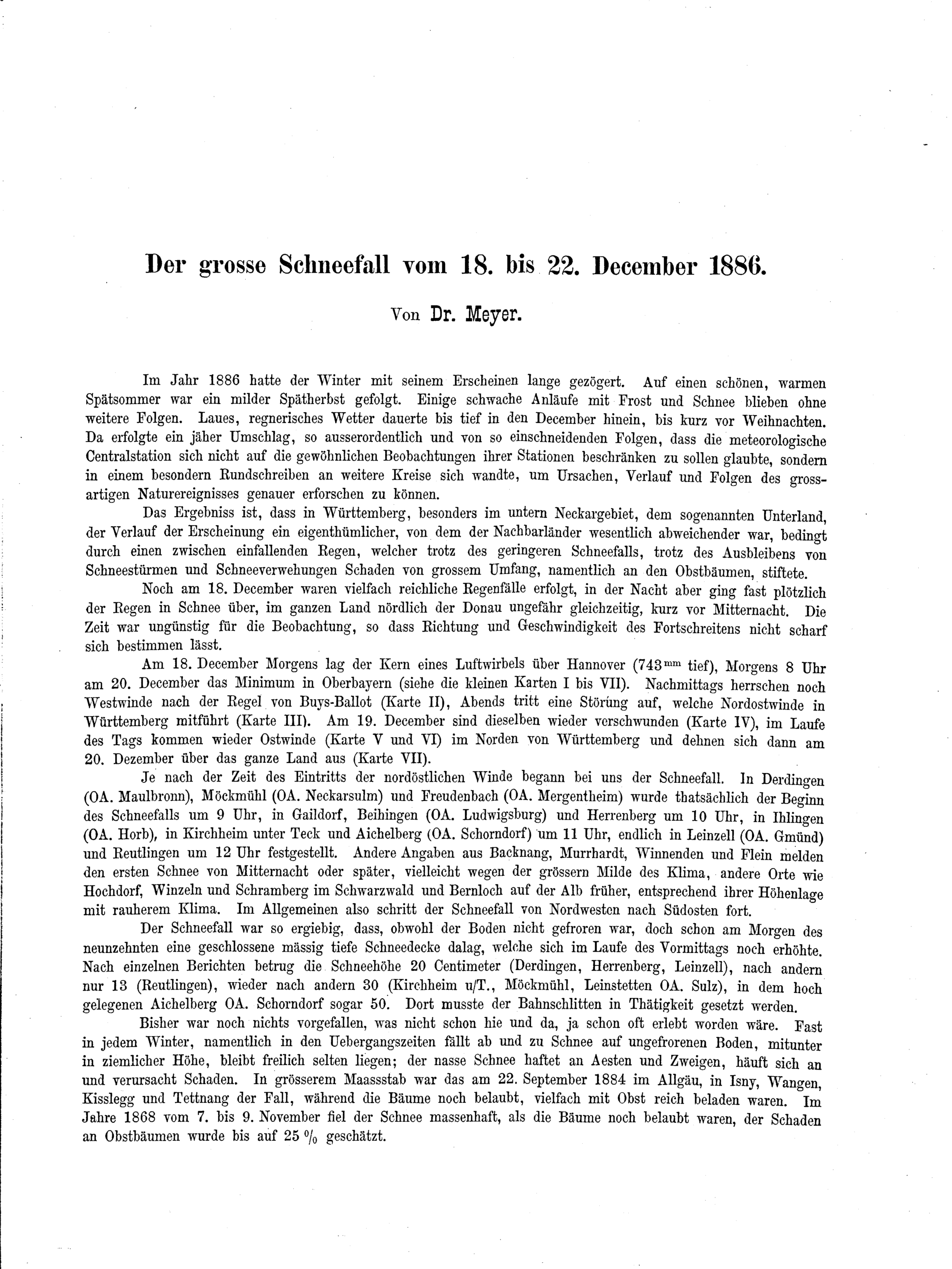 Der grosse Schneefall vom 18. bis 22. Dezember 1887
