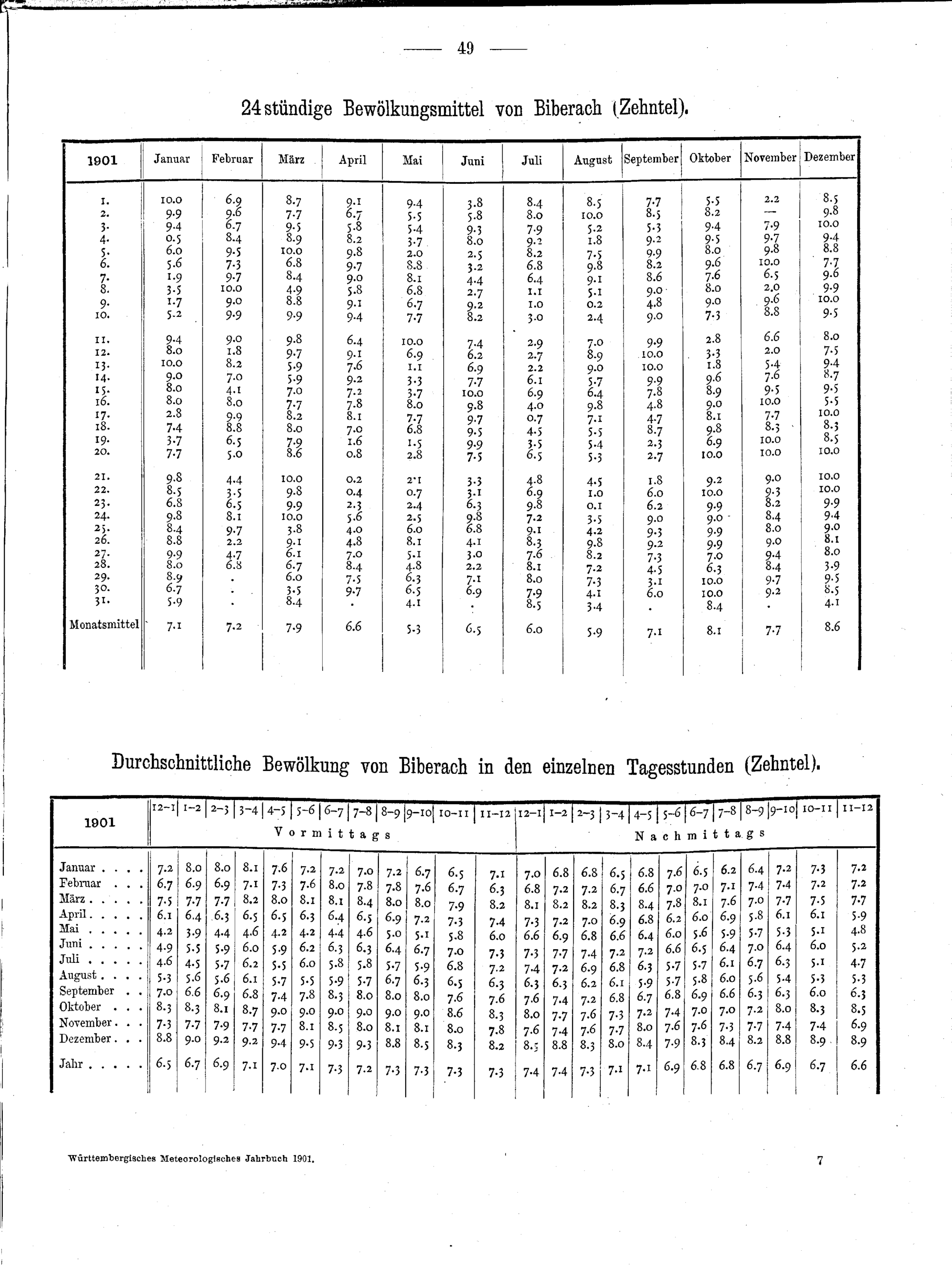 Die stündlichen Beobachtungen von Biberach